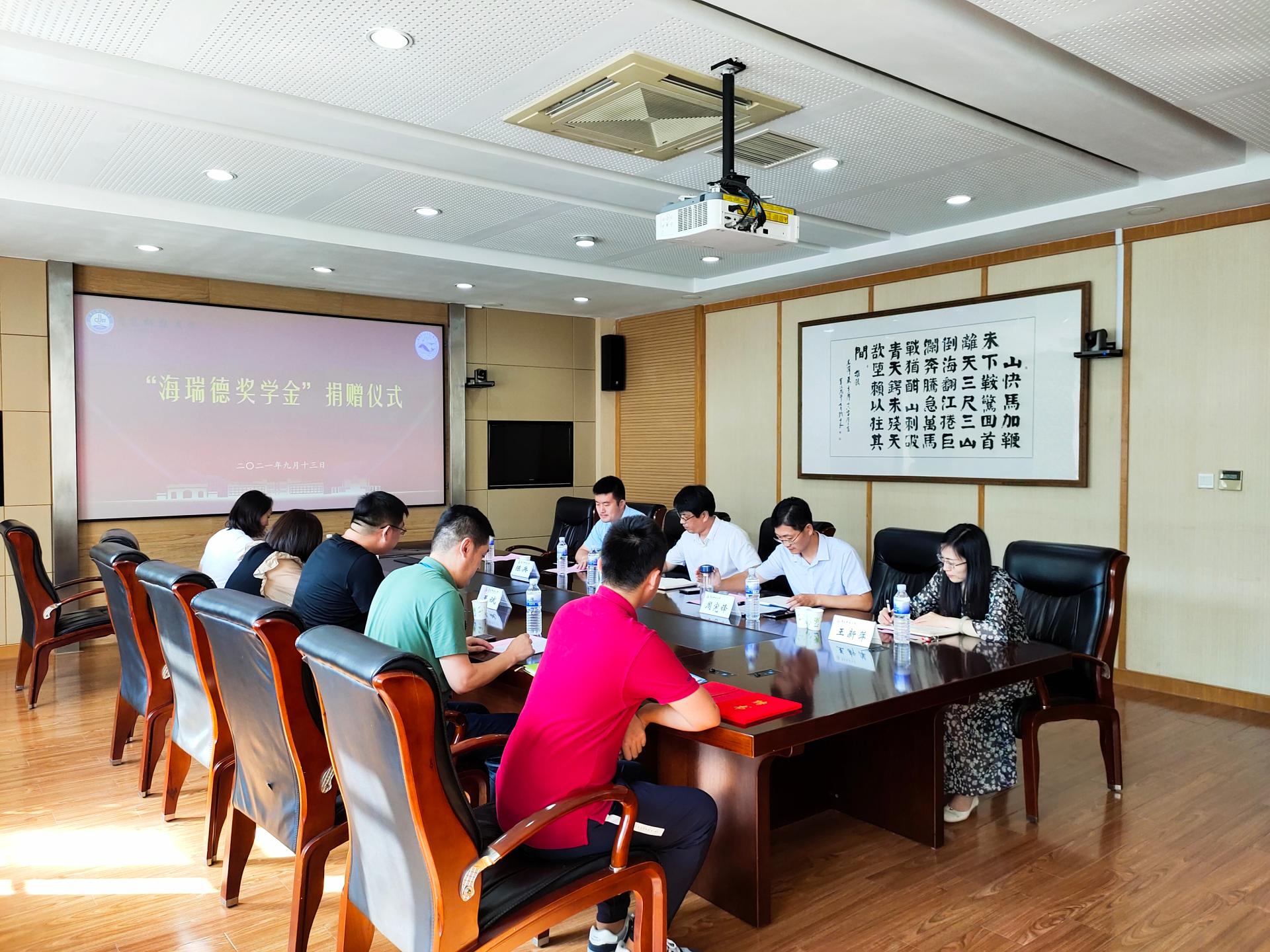 在学校建校71周年之际,海洋科学专业2005级校友、青岛海瑞德仪器有限公司总经理王斌来校捐赠,表达对母校的诚挚祝愿。校友会(教育基金会)主任王泽鹏、学院党总支书记周宪锋出席活动。