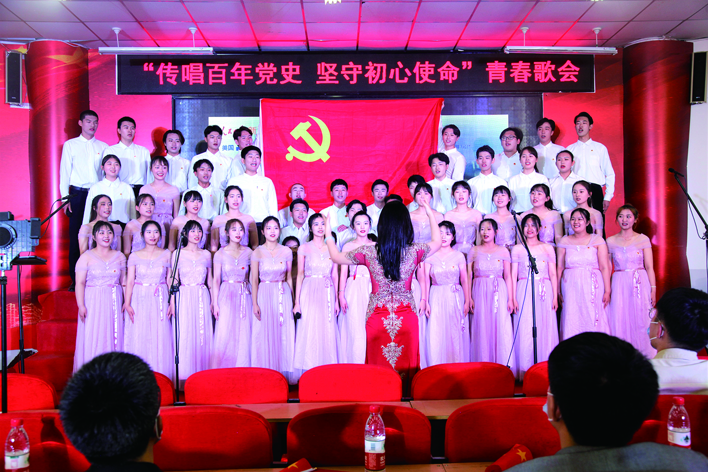“五四”青年节来临之际,高密校区组织开展“传唱百年党史,坚守初心使命”校园音乐思政课,以音乐导入党史,以歌声凝聚力量。来自各系的400余名青年学生组成8个合唱队,开展红歌接力传唱,讲述每一首红歌背后的红色故事。合唱队员以歌叙史,以歌铭志,同上一堂音乐党史课,唱响了“听党话、跟党走”的青春主旋律,在红歌传唱中,提升了政治修养、收获了信念真知、凝聚了奋进力量。