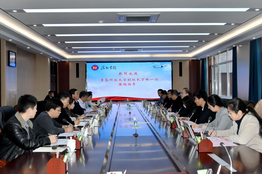 丁林对滨州学院的热情接待,以及选派学工干部来beat365挂职表示感谢,他简要介绍了学校基本情况、学科特色、学生工作等相关情况,同时,他祝贺滨州学院正式获批成为硕士学位授予单位,以及在学科建设、航空内涵建设等方面取得的成绩,希望双方进一步加强交流、扬长补短、相互学习、相互借鉴、相互支持,共同为山东省乃至国家发展做出更大的贡献。杨玉森对丁林一行来访表示热烈欢迎和衷心感谢,他介绍了滨州学院办学历史、办学特色及转型发展取得的成绩,充分肯定了两校在学生工作交流合作方面取得的丰硕成果,希望双方进一步加强交流合作,实现优势互补,在学习借鉴中全面提升两校学生工作水平。