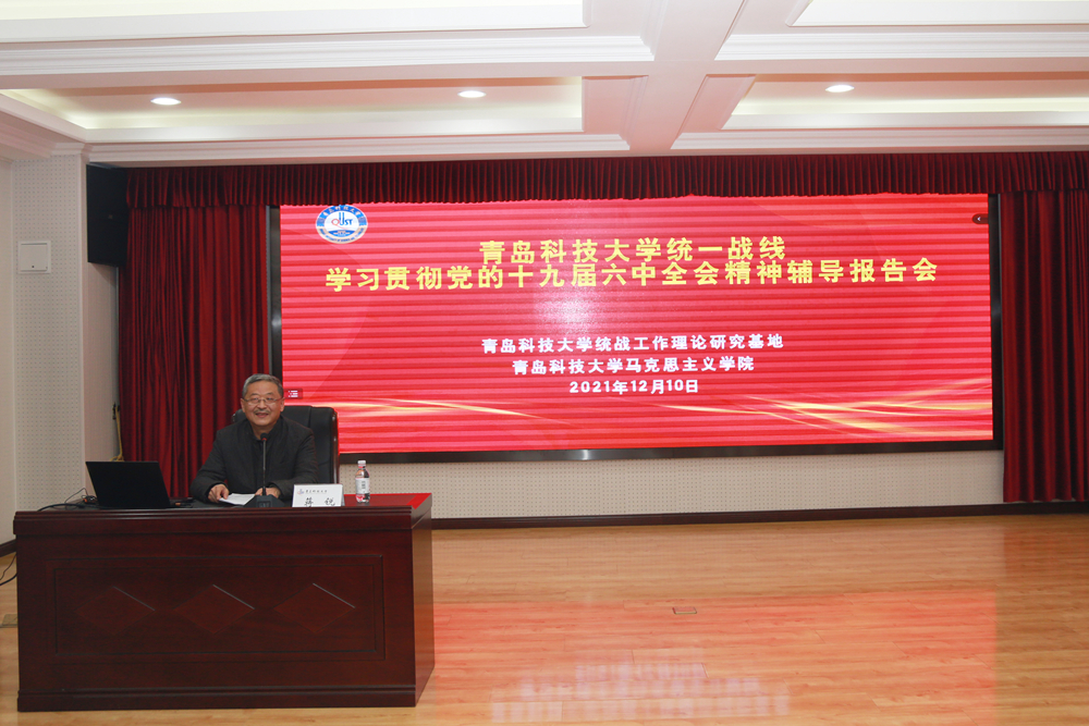 12月10日,学校统一战线举行学习贯彻党的十九届六中全会精神辅导报告会。校党委副书记张淑华,党委常委、统战部部长张洪坤出席会议。