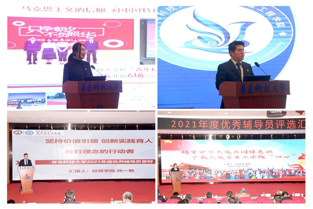 12月23日下午,学校召开2021年度优秀辅导员评选汇报会。党委常委、副校长丁林出席会议。各学院、校区27位优秀辅导员候选人结合今年学生工作开展情况分别进行了汇报。经校学生工作委员会成员,相关科室、中心负责人以及全体辅导员打分、评议,最终于洪芳等23名辅导员脱颖而出,获得beat365正版唯一官网“2021年度优秀辅导员”荣誉称号。据悉,2021年学校着力打造矩阵化辅导员队伍建设体系,横纵加强6个辅导员年级工作组、7个辅导员工作室建设,选派200余人参加校外线上线下高层次学习培训,推进“两化四有”体系建设、辅导员“强基计划”,举办辅导员素质能力大赛、“加油星期五”辅导员沙龙、辅导员恳谈会等。1人获评教授,3人获评副教授,1人获教育部人文社科研究专项(高校辅导员),2人获山东省辅导员优秀工作案例一、二等奖各1项;4篇论文入选全省高校辅导员工作论坛,入选数量位居全省第二;5人获山东高校辅导员讲党史优秀短视频展示一、二等奖;数十名辅导员获批省市级课题立项,获奖数量、质量创历年新高。