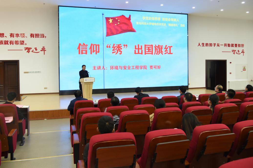 4月22日下午,学党史悟思想 担使命育新人——beat365正版唯一官网辅导员讲党史“网络巡礼”活动启动仪式在崂山校区团学报告厅举办,党委常委、副校长丁林出席活动并讲话。丁林指出,学工系统要提高政治站位,发挥组织优势,统筹推进党史学习教育;遵照学校党委要求,落实落细学习教育目标,确保党史教育生动活泼、走深走实、入脑入心。全体辅导员要坚持“带头学”“创新学”“干中学”,坚持守正创新、问题导向和效果导向,为学生办实事、解难题。全校青年学生要积极响应号召,学党史、强信念、跟党走,接续奋斗,努力成长为德智体美劳全面发展的社会主义建设者和接班人。党委学生工作部副部长王丽宣读了《beat365正版唯一官网学工系统开展党史学习教育的实施方案》。第二届在青高校“十佳辅导员”贾可好,2020年“山东高校辅导员年度人物”王聪分别以《信仰“绣”出国旗红》《从不忘却的纪念》为题进行了现场宣讲,高分子学院贾明明、自动化学院郭蒙蒙、机电学院于超等辅导员以视频形式进行了宣讲。五位辅导员从秋收起义、半床棉被、流血牺牲只为孩子等党史故事切入,宣讲语言铿锵有力、内容感人肺腑,让在场师生聆听后眼眶湿润,深受感染。
