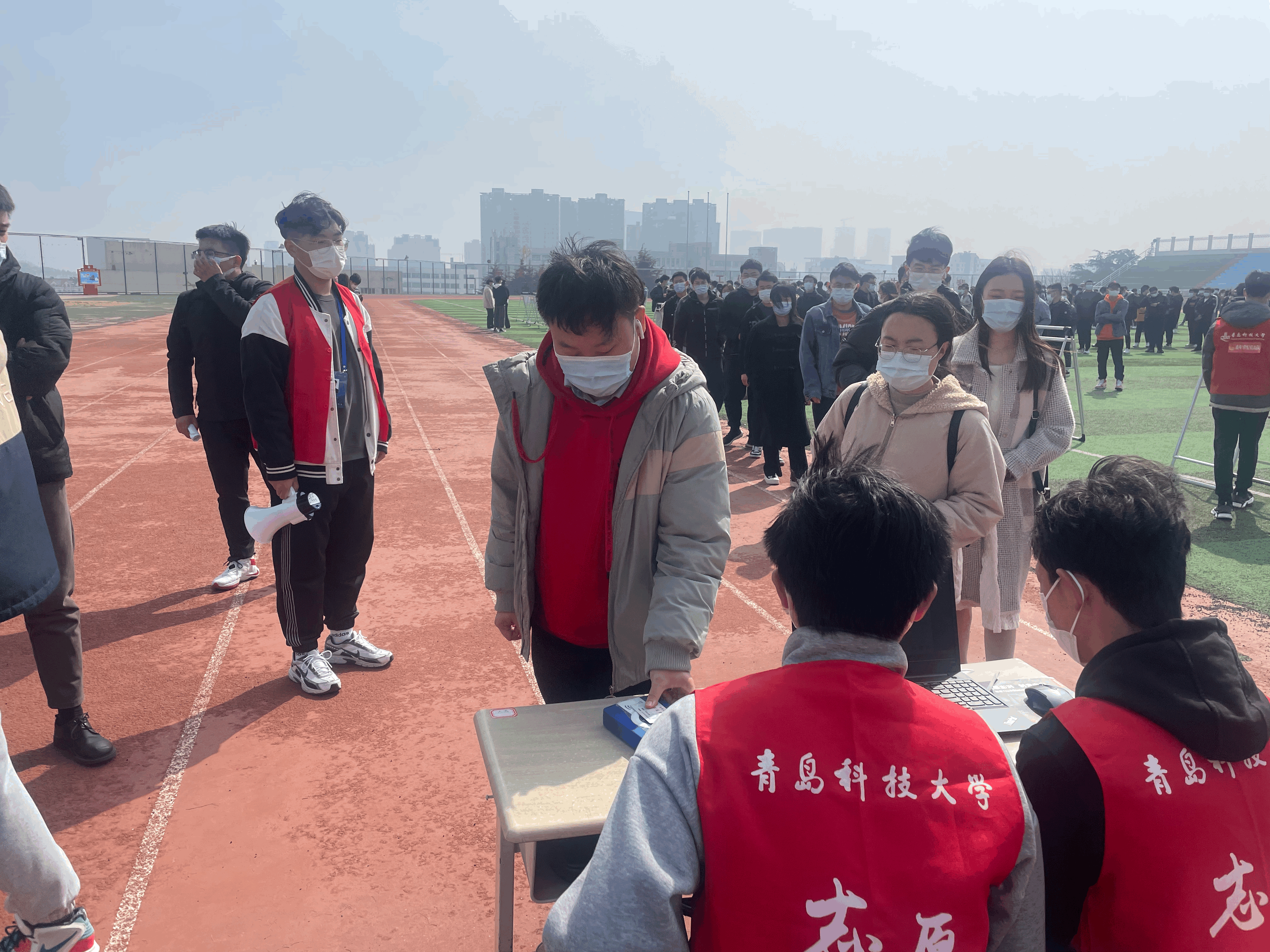 核酸检测时,学院学生到达集合地点,系统登记、人员引导、列队待检等各个环节都高效有序。学生排队打卡的场面成为了一道崭新的风景线,信息统计志愿者张致远说:“通过使用打卡方式,我们现场组织更有条理了,系统登记以后当天到场人员情况一目了然。”