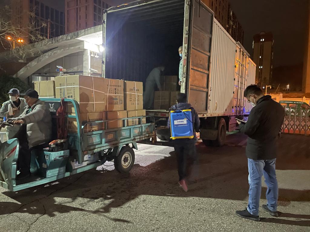 为了降低疫情传播风险,生活保障类车辆只能在晚上十点半到早上六点半之间入校。后勤处在校门口设立生活物资接驳区和卸货消杀缓冲区,认真细致的对每一辆车外表和车内物资进行彻底消毒。目前,崂山、四方两校区在校师生超过3万人,平均每天消耗米面约6000公斤、鸡蛋约1500公斤,蔬菜约12000公斤,肉类约5000公斤,食用油约1800升,即使经过多次统筹削减,每天运输物资的车辆仍超过50辆。物资消杀组的工作人员成宿不能休息,用自己的付出守护着师生的健康。