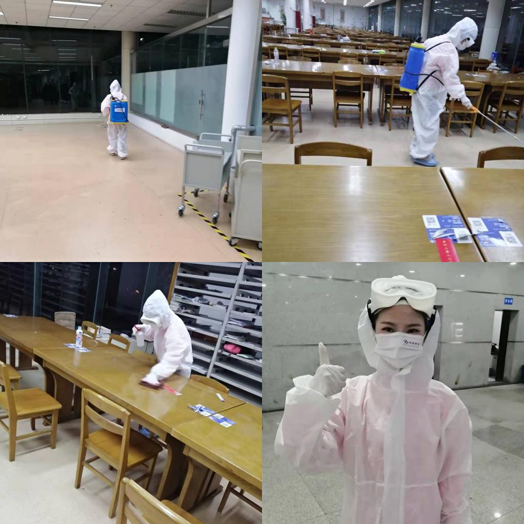 环境消杀是疫情防控的重要屏障。校园封闭管理,物业工作人员数量减少,但工作任务却大幅上升。校园服务中心进一步加大校园环境卫生整治力度,各物业公司认真落实学校相关要求,做好楼内外公共区域的卫生消毒工作,每日消毒面积10余万平方米。对电梯间、卫生间、垃圾桶等重点区域每日两消,确保不留死角。