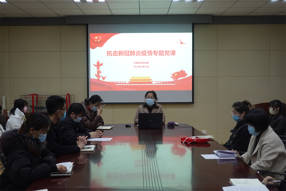 外国语学院第一时间召开疫情防控领导小组会议,传达学校疫情防控工作动员部署会精神,研究制定并迅速落实“六个一”全员战疫举措:召开一次班主任(研究生导师)工作会议、成立一支战疫党员突击队、开展一次战疫专题党课、签订一份党员突击队战疫承诺书、建立一种“党政负责人-分管负责人-辅导员-班长-舍长-个人”六级网格化管理模式、实行一套“一日一布置、一日一总结、一日一通报”的工作机制,进一步压实工作责任,畅通信息渠道,优化工作机制,确保战疫责任落实到最细小的单元,织密全员战疫网,奏响决战新号角。