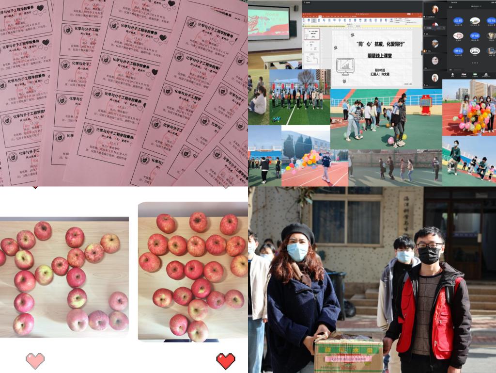 确保暖心服务,提高工作效度。学院创新工作方式方法,疫情防控期间关注学生心理状态,切实做好学生的思想引导、心理疏导、生活保障和关心关爱工作,坚定师生战疫信心。开展“善爱我”系列活动,为过生日的同学送去生日祝福,让同学们感受到疫情时期来自学校和老师的温暖与关怀,开展“同’心’抗疫,化爱同行”主题线上团辅和线下班级团建活动。引导学生以“抗疫”为主题,谈抗击疫情感想,分享抗疫故事,讲解心理疏导方法。为全体学生发放3200斤爱心水果和4020张“抗疫餐券”,鼓励同学们坚定信心、众志成城,统筹好疫情防控和学习锻炼等工作。