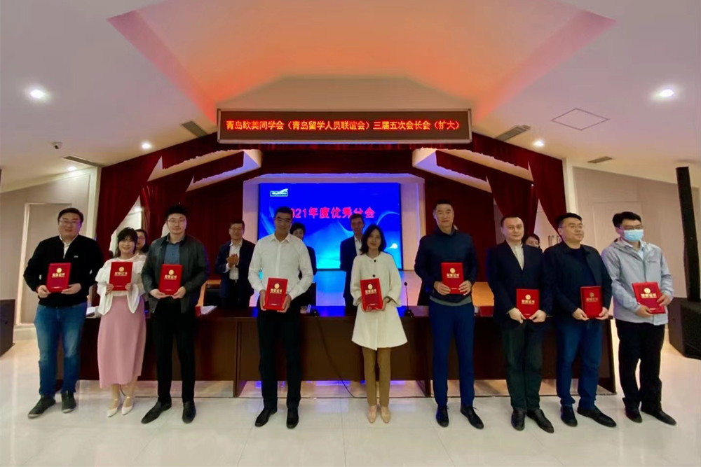 4月28日,青岛欧美同学会(青岛留学人员联谊会)三届五次会长会(扩大)召开,青岛市委统战部副部长杨长军,山东省政府参事、青岛欧美同学会会长邵峰晶出席会议并讲话,青岛市委统战部副部长、青岛欧美同学会秘书长张辉主持会议。学校欧美同学会会长李庆领出席会议并代表获奖分会交流发言。会议表扬奖励2021年度优秀分会和先进个人,学校欧美同学会荣获2021年度优秀分会,会员李猛荣获2021年度工作先进个人称号。