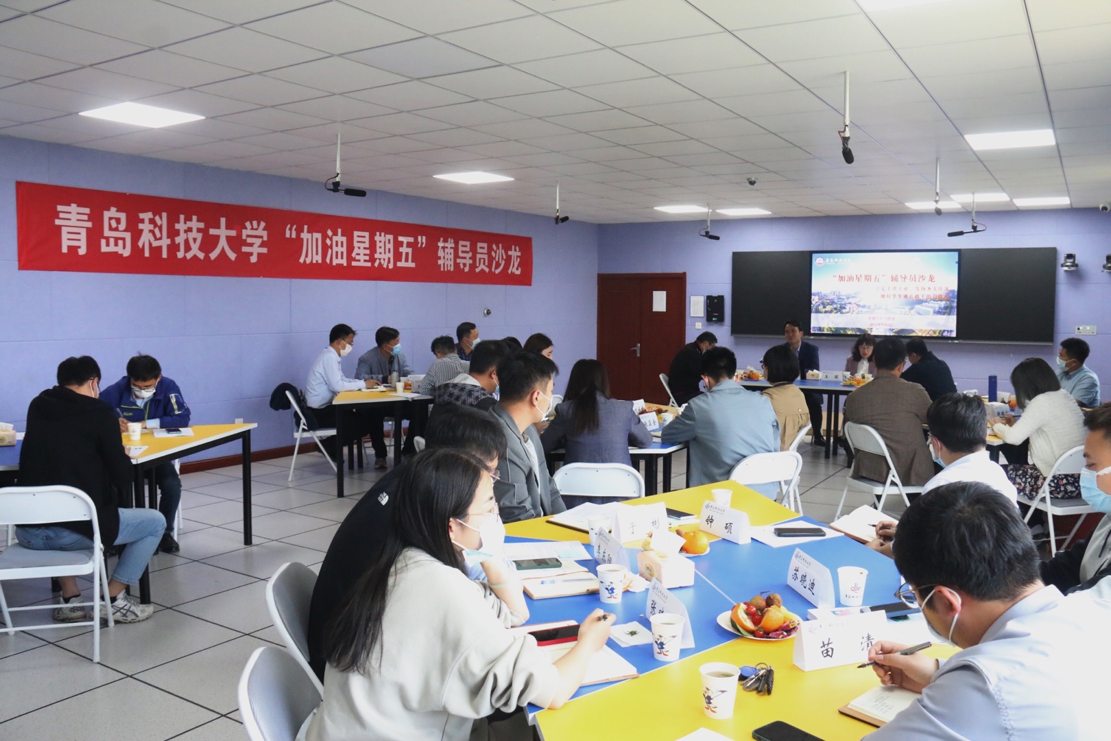 5月6日下午,学校在崂山校区三创中心举办“加油星期五”辅导员沙龙,邀请体育学院党总支书记张霄担任主讲嘉宾。党委学生工作部副部长王丽及各学院(校区)学工办主任、副主任30余人参加活动。