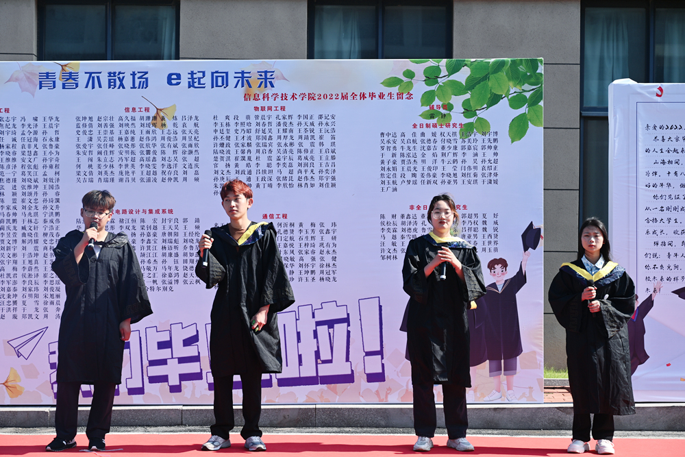 毕业季期间,信息学院先后组织开展了毕业生廉洁从业主题教育座谈会、“青春不散场,美好永定格”毕业照拍摄活动、“岁月匆匆,惟愿总相逢”毕业生寄语征集、考研就业经验分享会、“毕业杯”篮球赛、“希望小屋”爱心捐赠志愿服务、毕业季送“清凉”等系列活动,通过活动让毕业生感受那份专属于毕业季的美好与感动,也积极引导毕业生系好职场第一粒扣子,努力成为引领和弘扬社会清风正气、堪当民族复兴大任的时代新人。同时,毕业生表达了对母校的深深留恋和对学弟学妹的殷殷嘱托,即将带着新的梦想踏上新的征程。