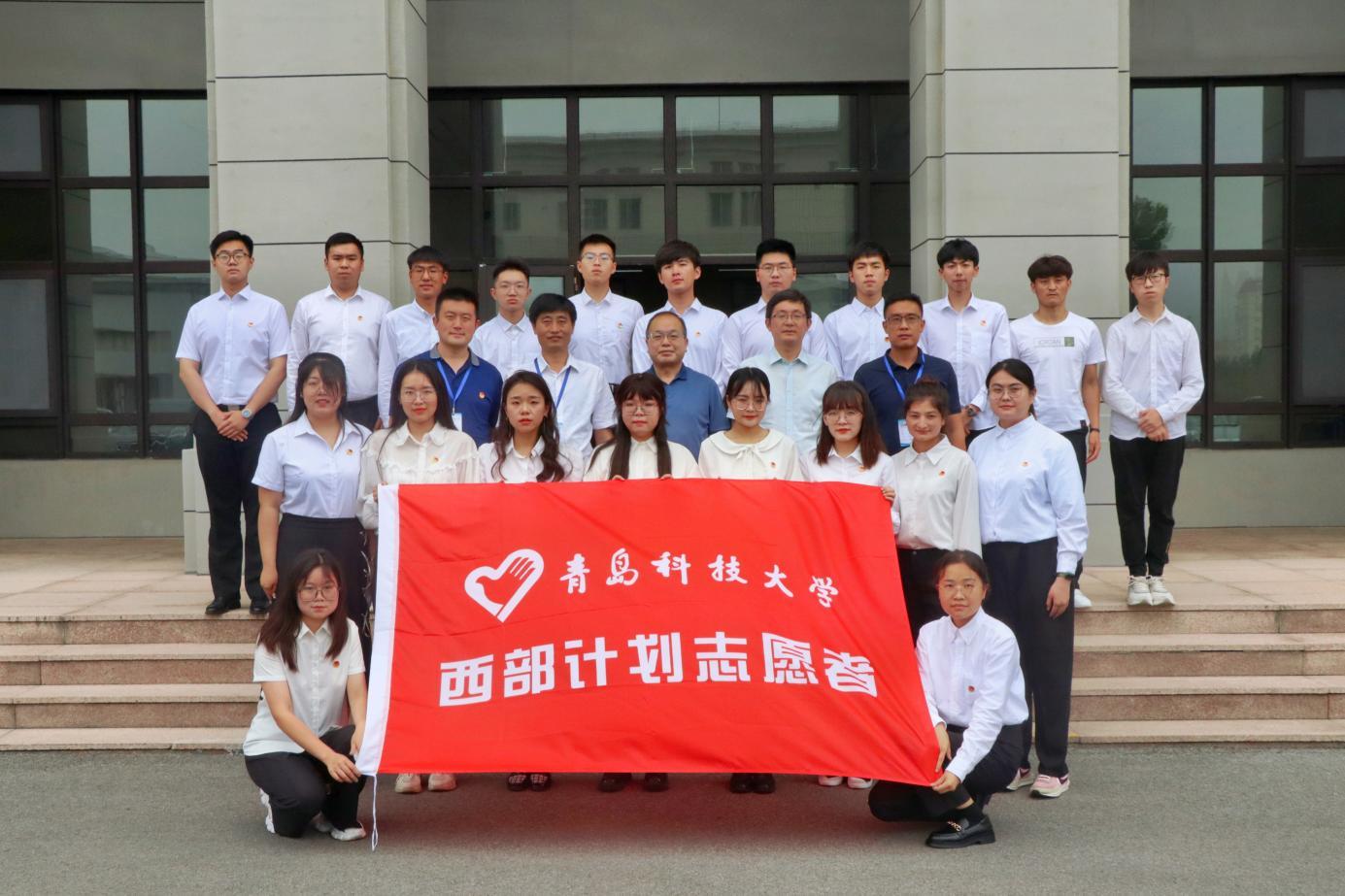 丁林为西部计划志愿者授旗并高度肯定志愿者们主动献身祖国西部发展的实际行动,希望志愿者们珍惜机会、不辱使命,心境澄明、心力茁壮,知行合一、学以致用,报效国家、造福人民,当好青科大的亮丽名片,在祖国西部贡献青春、智慧和力量。