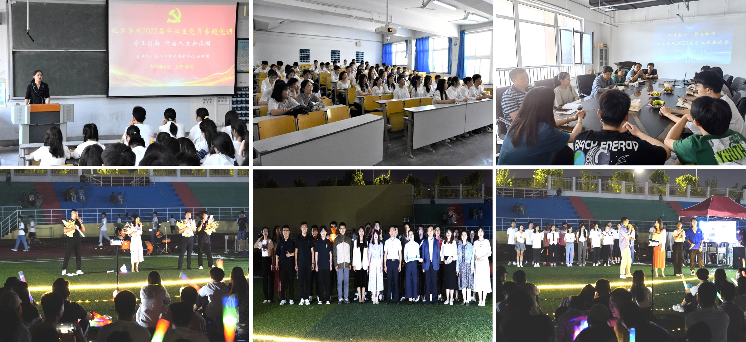 涵养家国情怀,筑梦扬帆起航。学院以党史学习教育为契机,将党史学习教育贯穿毕业生离校工作全过程。学院党委副书记孙明媚为全体毕业生党员讲授“守正创新、开启人生新旅程”党史学习教育主题党课;召开2022届毕业生座谈会,鼓励毕业生在离校之际为学院发展建言献策,助力学院高质量发展;学院举办“最美思政课”文化路演暨2022届毕业生音乐节,节目多角度融入思政元素,引导毕业生树立正确的党史观,增进爱校情感,增强报国信念,带着科大精神、橡胶品格,带着“五有”青春正能量驰骋四海、乘风破浪,开启人生新旅程。