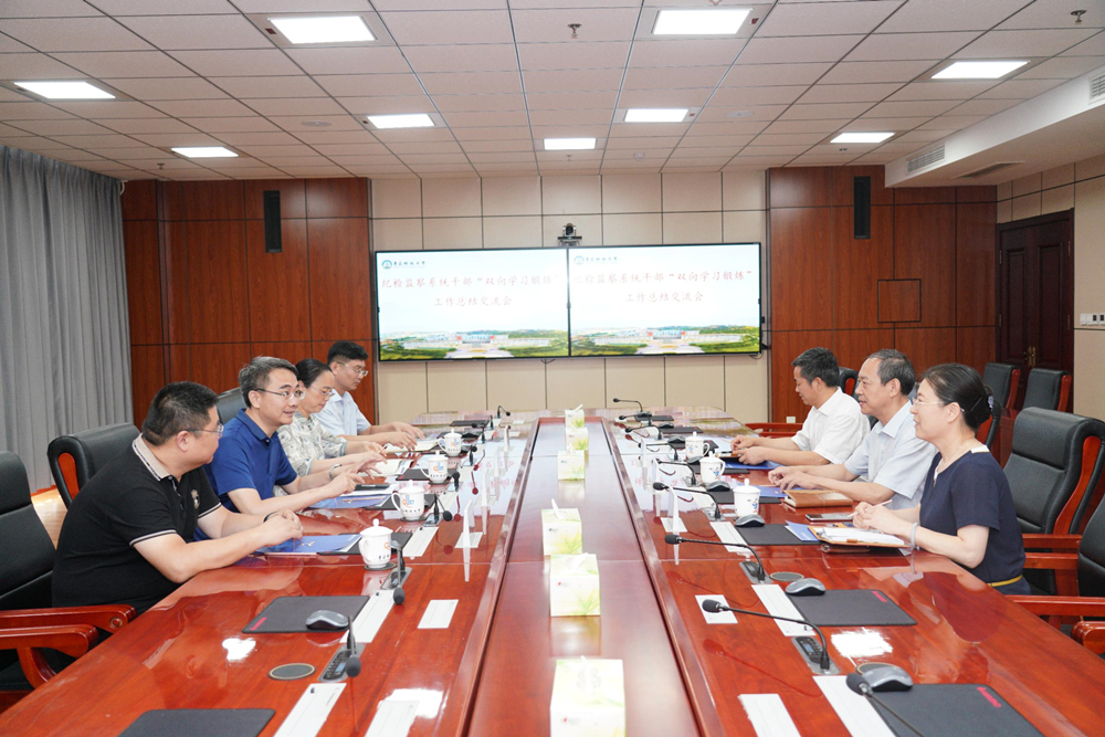 8月3日,beat365第三批全省纪检监察系统干部“双向学习锻炼”工作总结交流会在综合服务楼6015会议室举行。学校纪委书记、监察专员刘明永,崂山区委常委、纪委书记刘文建一行3人及学校纪检监察机关负责人出席交流会。