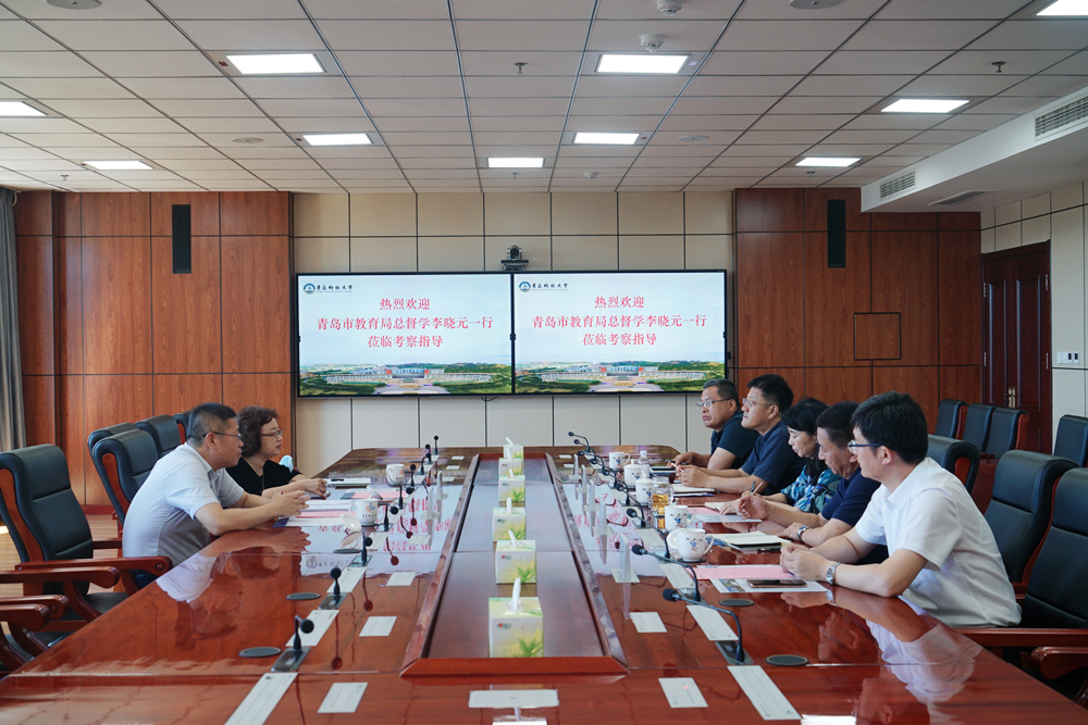 8月17日上午,青岛市教育局总督学李晓元、高教处处长孙喜莲一行来beat365正版唯一官网调研交流。调研座谈会在崂山校区综合服务楼6015会议室举行,学校党委副书记沈文青出席座谈会。
