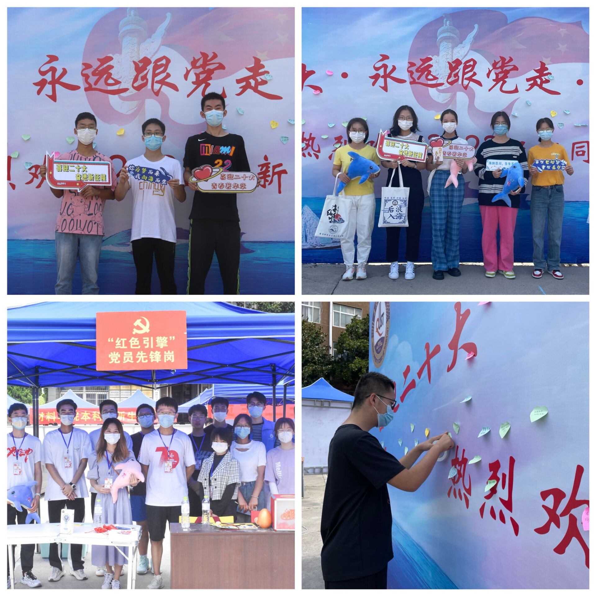 迎新现场设置“青春献礼二十大,砥砺奋进新征程”知识竞赛活动,竞赛题目包含党史知识、校史校情、传统文化、学术规范等,做好新生入校第一课教育。立足学院特色,设计海洋学院专属帆布包、胸牌、福袋以及防疫物资等精美的文创产品,并于报到当日送给各位同学,希望2022级全体新生能够载着深深祝福,与爱同行,砥砺奋进!