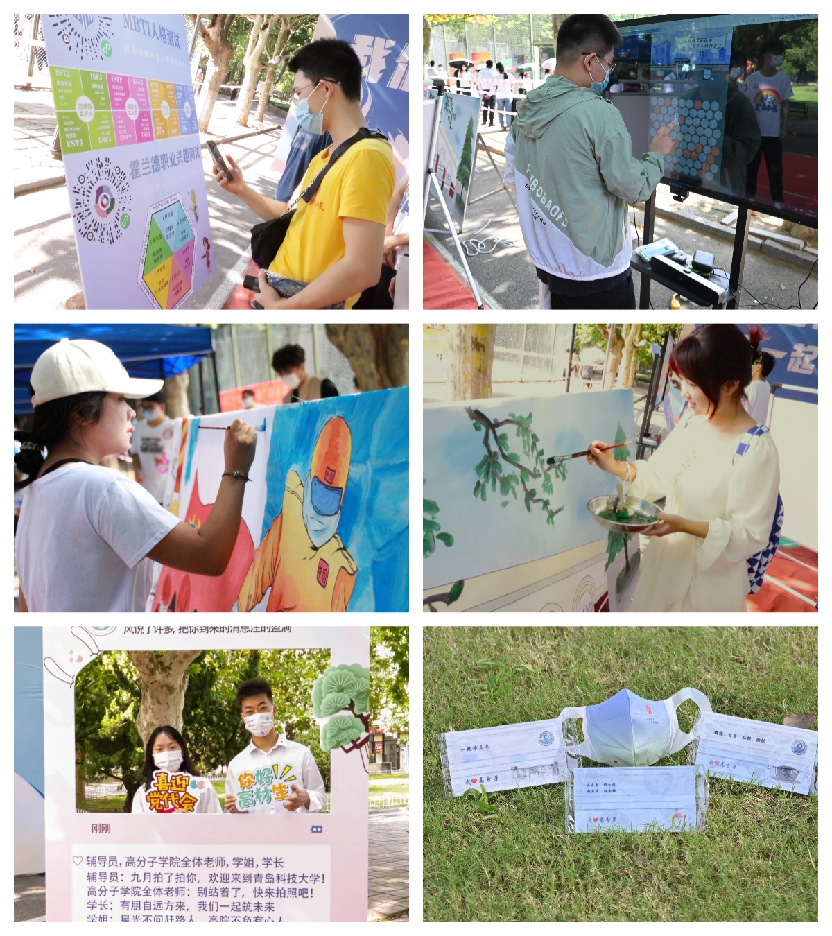 筑梦起航——强化认知,明确方向。为使新生充分了解个人特质,确定发展目标,树立远大理想,通过MBTI人格测试、霍兰德职业兴趣测试等活动,科学高效地帮助新同学明晰合适职业,在此基础上结合个人追求及期待,有针对性地完善个人性格品质,规划个人奋斗路径;通过围住神经猫等趣味游戏,引导新生学会放眼全局,抓住关键,制定行之有效的行动计划。学院分别制作了“中国这十年”主题彩绘展板、“爱体育 兴科大”冬奥主题彩绘展板以及学校代表建筑主题彩绘展板,充分展示国家发展成就、冬奥运动风采、校园美丽景色,鼓励每位新生添一笔颜色,增一分了解,结合云游校园活动,通过线上线下相结合的方式,全方位、多渠道帮助大一新生更好地认识自身所处时代背景及生活环境。