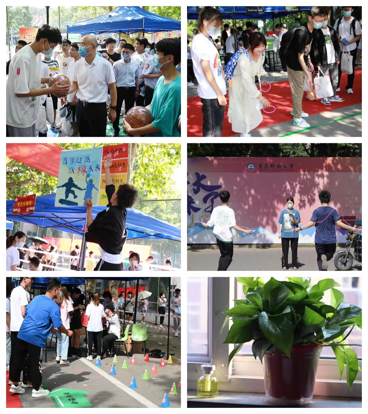 逐梦飞翔——五育融合,追梦前行。为使新生养成知行合一的良好习惯,将思想转化为行动,把功夫落实到实践,进一步发挥学院“学在高分子,成就高材生”学生工作品牌效能,学院多措并举,引导新生积极逐梦。在“德”上下功夫,组织“圈圈”心意套圈活动,将党的知识答题与流行的套圈活动相结合,在娱乐中强化思政教育,创设“套圈思政”新亮点,在学院范围内充分营造喜迎二十大的浓厚氛围;在“智”上下功夫,现场播放学院及专业宣传片,展示2022届考研优异成绩,进一步凸显学风建设成果,让新生在优秀榜样中择“星”而追,形成目标激励;在“体”上下功夫,充分融入体育思政理念,组织“蓄势起跳,跃橡未来”——摸高大比拼、一分钟跳绳、一分钟踢毽子等活动;在“美”上下功夫,重点围绕环境美育、活动美育,用心用力用情深化迎新活动内涵,合理设计迎新现场布局,美化迎新现场环境,保持迎新现场的干净整洁,便捷高效,实现环境美、活动美的育人效果;在“劳”上下功夫,积极落实学校学生宿舍环境卫生集中整治工作要求,提前为新生宿舍安排定制桌贴、绿萝及香薰,培养积极劳动意识,共建整洁校园环境。