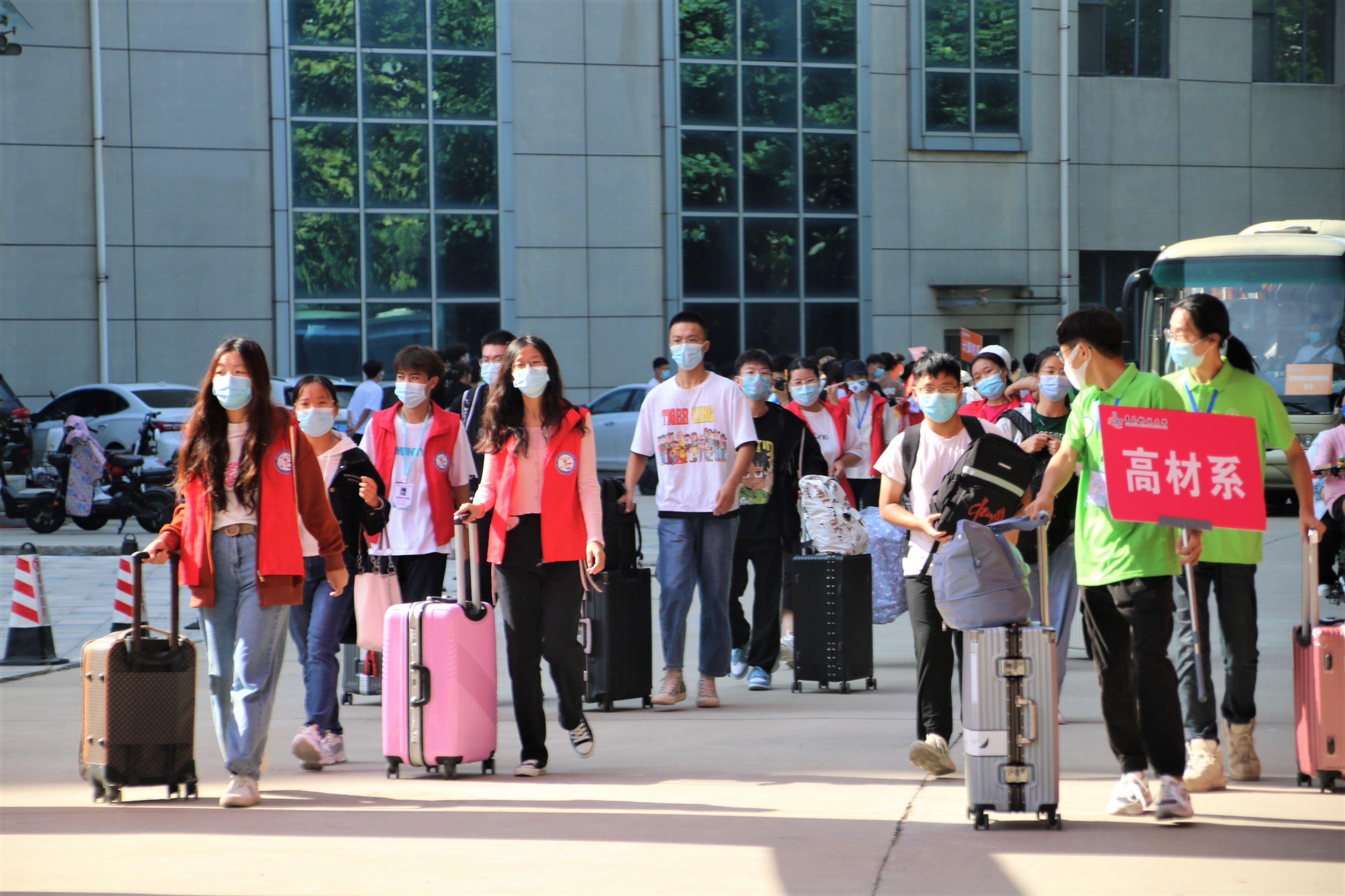 联动有序,顺畅舒心。校区各部门从车站接车、入校体温检测、验证验码、校内接驳、宿舍分配、志愿者陪同、入校就餐、安全保障等多方面协同联动,迎新工作平稳顺畅有序。爱心接驳车在校园中频繁穿梭,帮助新生完成“最后一公里”的行李搬运,成为一道亮丽的风景线。校区团委对迎新志愿者师生进行了专题培训,并明确了岗位分工。从接站开始一直到入驻宿舍,各位志愿者都以饱满的热情、娴熟业务、得体言谈举止,给新生及家长留下了良好的印象。校区负责人、各系主任及新生辅导员第一时间到宿舍看望新生,帮助学生尽快熟悉校区,感受家的温暖。