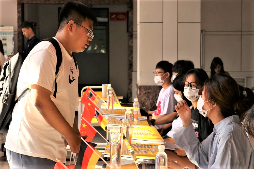中西融汇,梦启中德。学院开展贴心志愿服务,优化报到流程,引导新生自主报到,打造暖心、便捷、难忘的迎新报到流程。学生宿舍区域内和迎新现场悬挂中德两国国旗。从大厅双语标语到外教现场答疑,细节处体现中德办学元素,让学生感受到国际化办学特色。