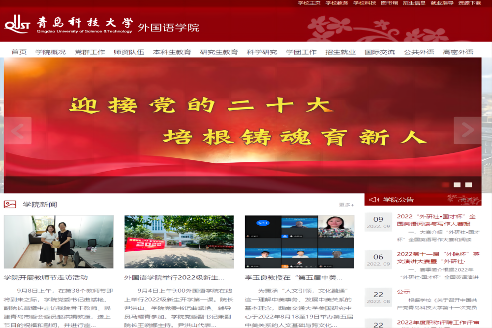 学院官网也同步更新了主页的滚动展示图,更换“迎接党的二十大,培根铸魂育新人”标语,激励广大教师献身教育事业,矢志教书育人,三尺讲台勤奋耕耘,四秩春秋无私奉献,为党为国培育新人。