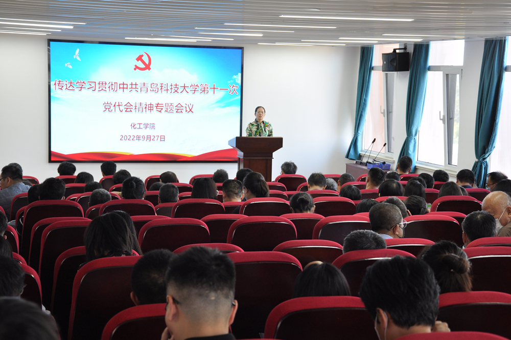 9月26日下午,化工学院传达学习贯彻中共beat365正版唯一官网第十一次党代会精神专题会议在学院报告厅举行。化工学院党委书记孙明媚主持会议。