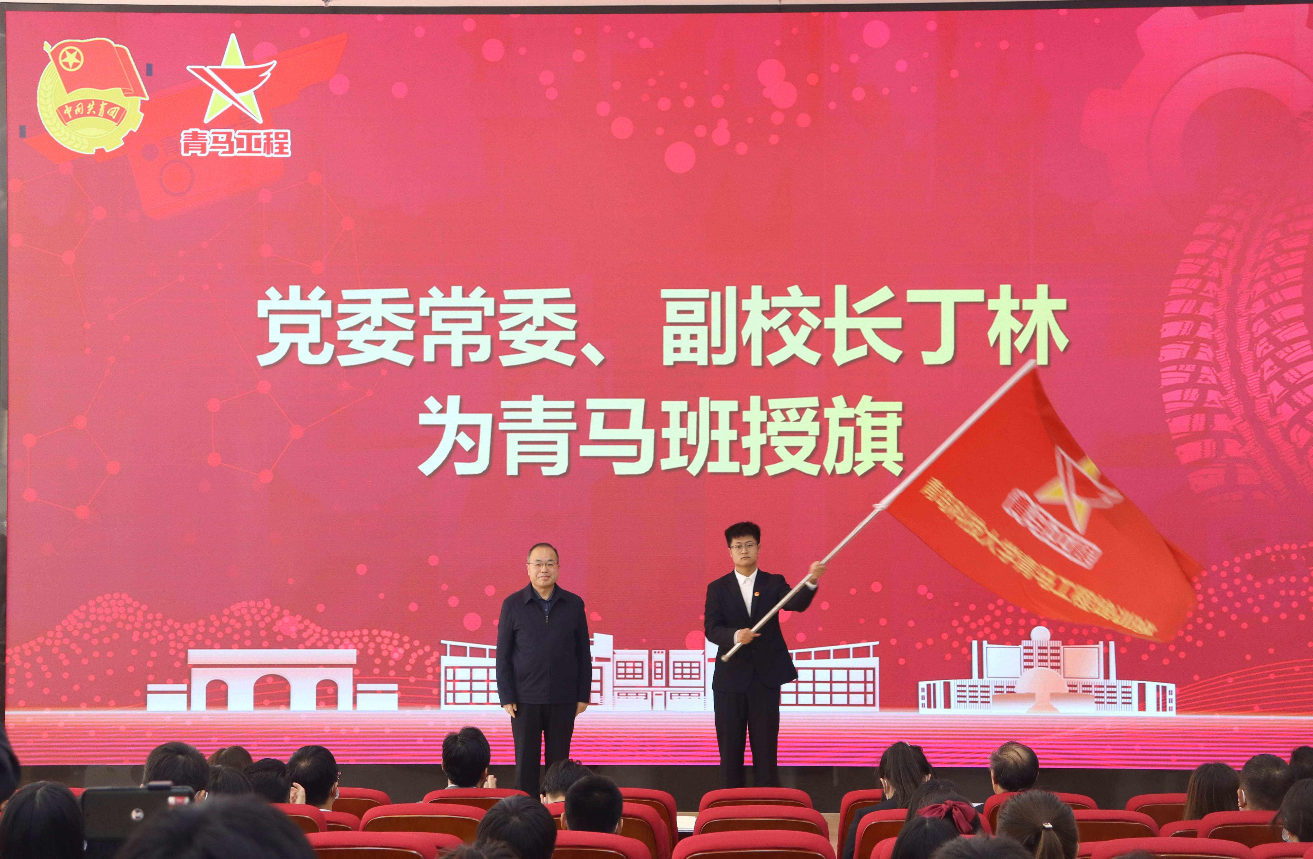 仪式上,丁林为青马工程培训班授旗,并以《有理想敢担当能吃苦肯奋斗在中国式现代化道路上勇毅前行》为题,为校院两级青马学员讲授“开班第一课”。