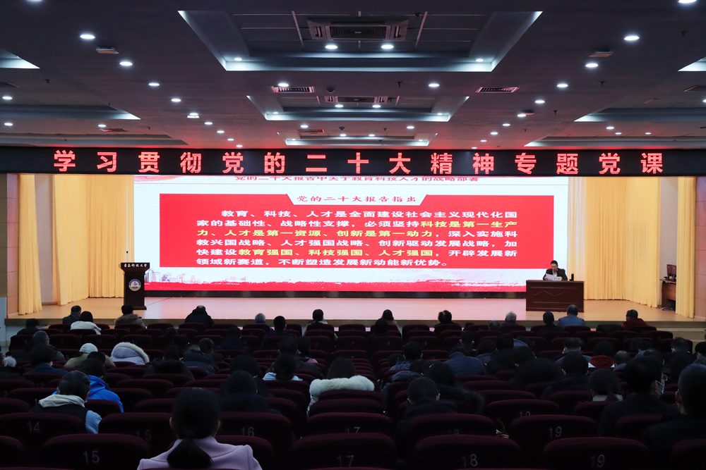 吕万翔指出,党的二十大是在向第二个百年奋斗目标进军的关键时期,高举旗帜、凝聚力量、团结奋进的大会。他从党的二十大的主题、主要成果和报告起草的过程,过去五年工作和新时代十年的伟大变革,中国式现代化,二十大报告中关于教育科技人才的战略部署等四个方面,进行了系统宣讲和阐释。
