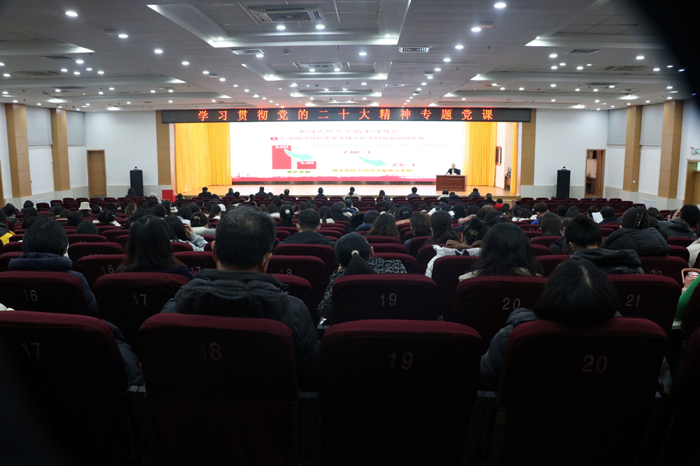 12月6日下午,学校党委常委、纪委书记、省监委驻beat365正版唯一官网监察专员刘明永在崂山校区第二报告厅为传媒学院、法学院和外国语学院的全体师生党员开展学习贯彻党的二十大精神专题党课。