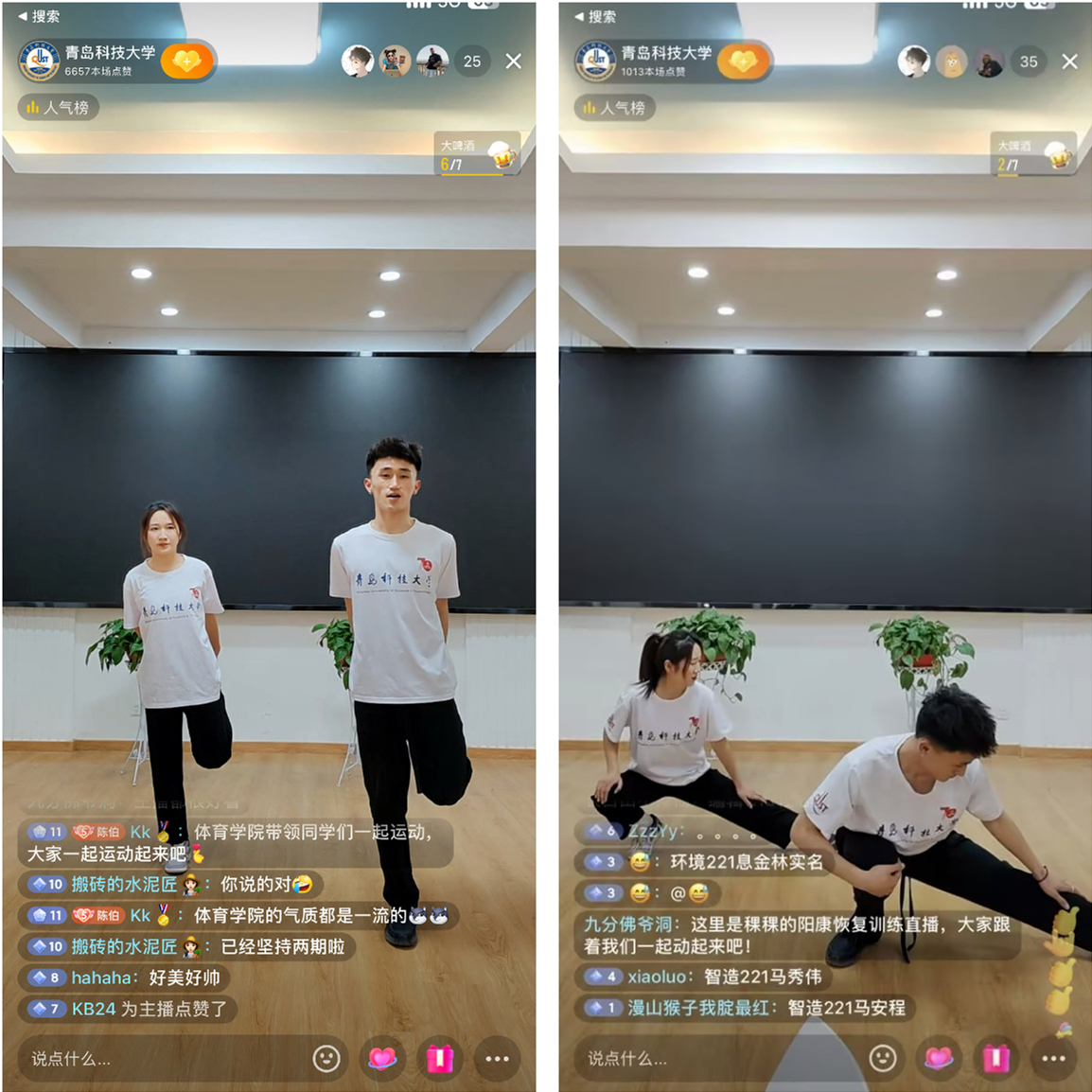 本次线上活动是党委宣传部、校团委、学生处和体育学院在疫情防控新形势下探索体育育人工作、推动学校体育综合改革走实走深的新举措,直播活动自3月11日开播以来,得到了广大师生积极响应,积极参与到直播中进行体育锻炼、互动交流。据悉,直播活动将在每周三、周六晚8时持续进行,在此基础上还将发起“与青科一起动起来”运动健身微视频大赛、“达人带你练起来”器械健身直播活动等系列线上活动赛事,通过多种方式营造全员积极参与体育锻炼的良好氛围,树立“拥抱体育、出彩人生”健康理念,推动“爱体育·兴科大”育人品牌建设。