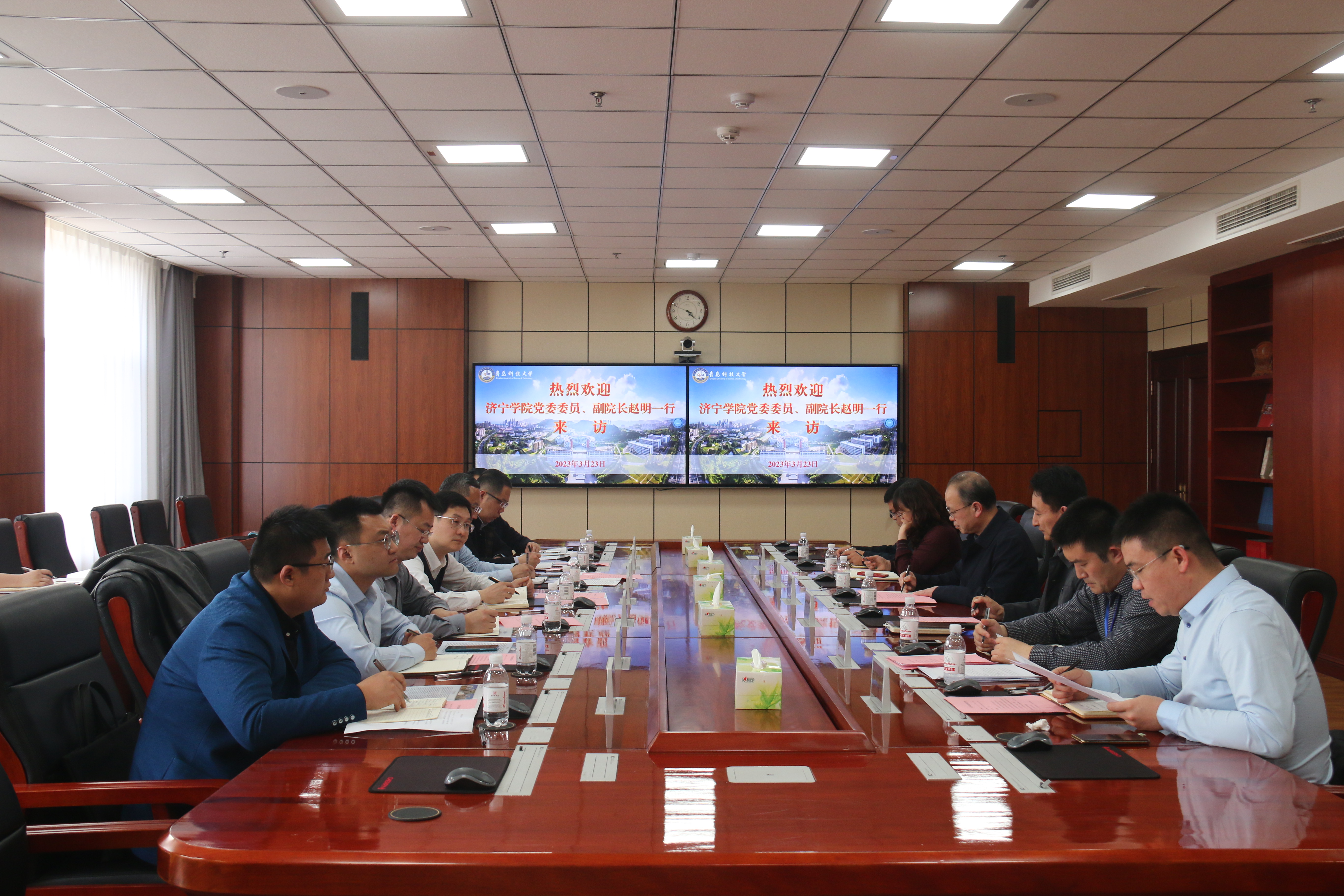 3月23日下午,济宁学院党委委员、副院长赵明一行7人来校考察交流。学校党委常委、副校长丁林出席座谈会,学生工作处处长王丽主持会议。
