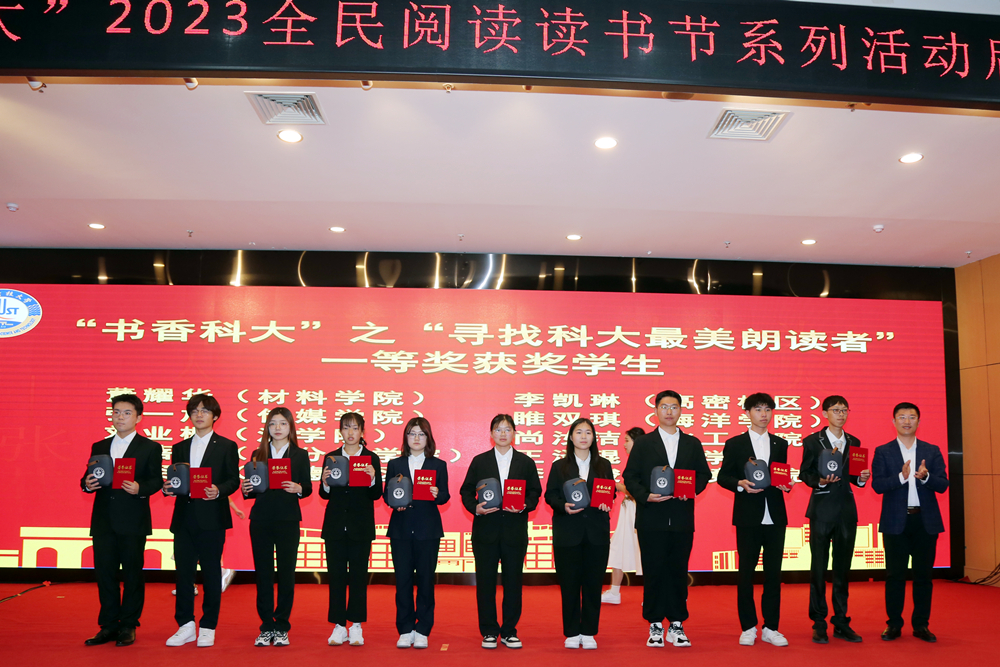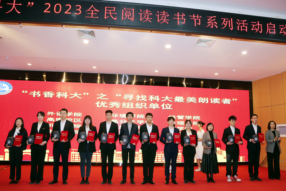 仪式上,图书馆馆长李明宣读了《beat365正版唯一官网“书香科大”2023读书节系列活动方案》。“寻找科大最美朗读者”朗读大赛一等奖获得者图书馆张国宏老师、环境学院李其骏同学分别为大家朗诵获奖作品《我在一颗石榴里看见我的祖国》《艰难的国运与雄健的国民》。