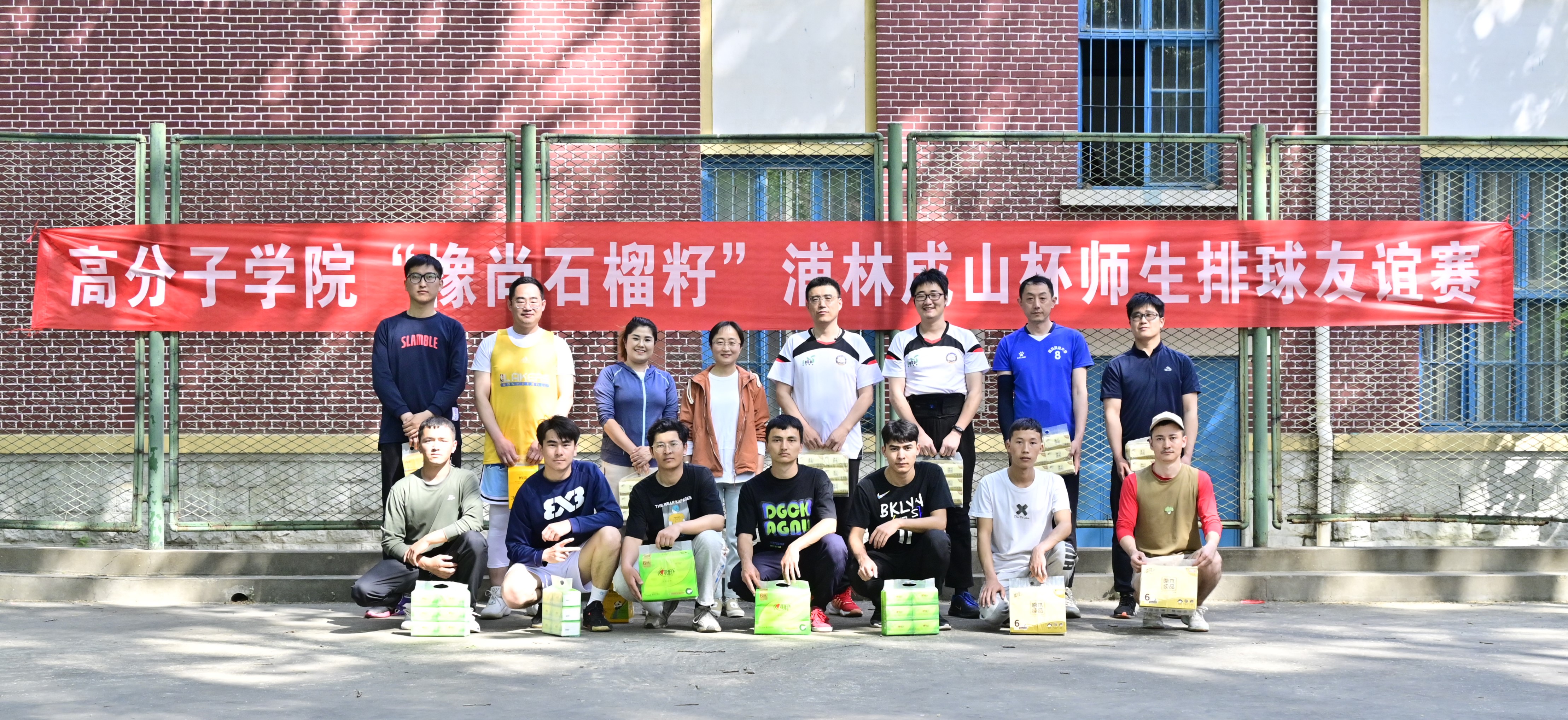 为了丰富同学们的大学生活,促进全民锻炼,5月7日下午,高分子学院在四方校区排球场举办“橡尚石榴籽”浦林成山杯师生排球友谊赛。学院相关负责人、学院教职工排球队、学校及学院部分少数民族师生代表参加活动。
