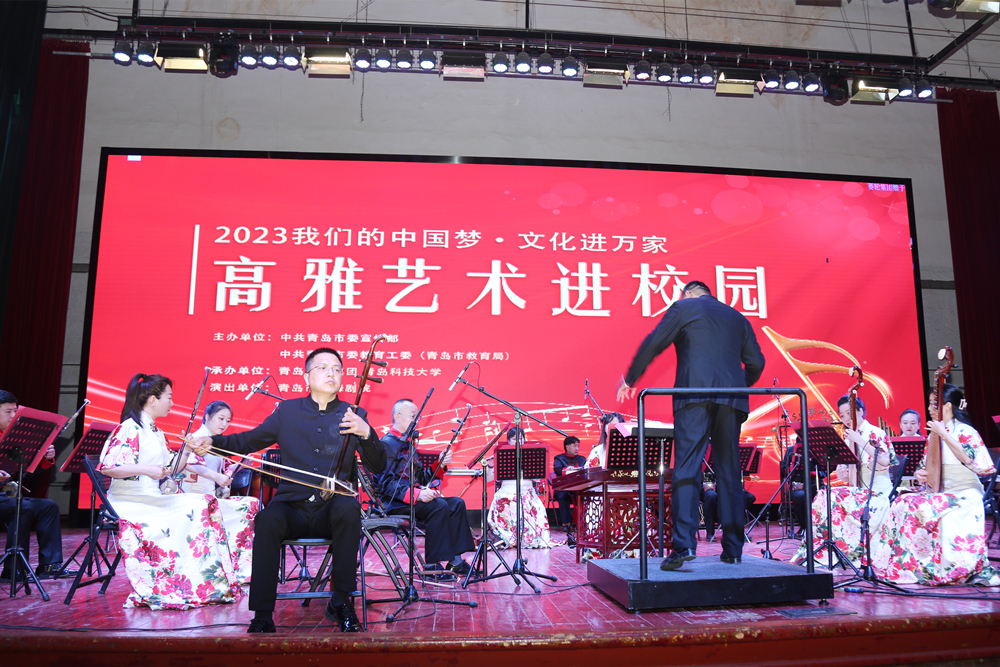 5月16日,“2023我们的中国梦·文化进万家”高雅艺术进校园“国风雅韵”民族音乐会在beat365正版唯一官网文化中心奏响。青岛市歌舞剧院副院长刘岩成,学校党委常委、宣传部部长张洪坤,团委书记刘跃宁,四方校区近1200名师生代表参加了音乐会。