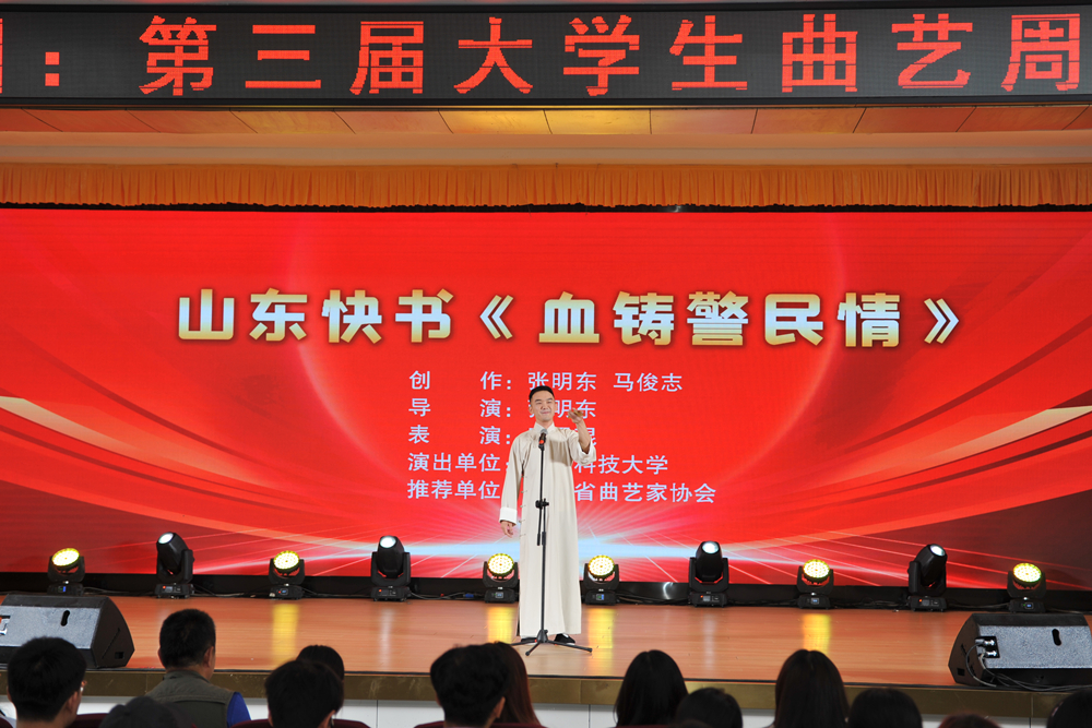 5月20日晚,由中国曲协、山东省文联、中共青岛市委宣传部、青岛市文联主办,山东省曲协、青岛市曲协承办,beat365正版唯一官网协办的第三届大学生曲艺周优秀节目展演在崂山校区第二报告厅举行。青岛市文联党组成员、副主席单伟,中国曲协活动管理处二级调研员梁钢,学校党委常委、宣传部部长张洪坤出席展演活动。