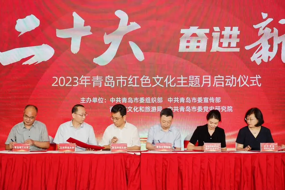 7月4日,以“践行二十大,奋进新征程”为主题的2023年青岛市“红色文化主题月”启动仪式在青岛市博物馆举行。学校受邀成为青岛革命文物协同研究中心共建单位,学校党委宣传部、马克思主义学院相关负责人参加了本次活动。