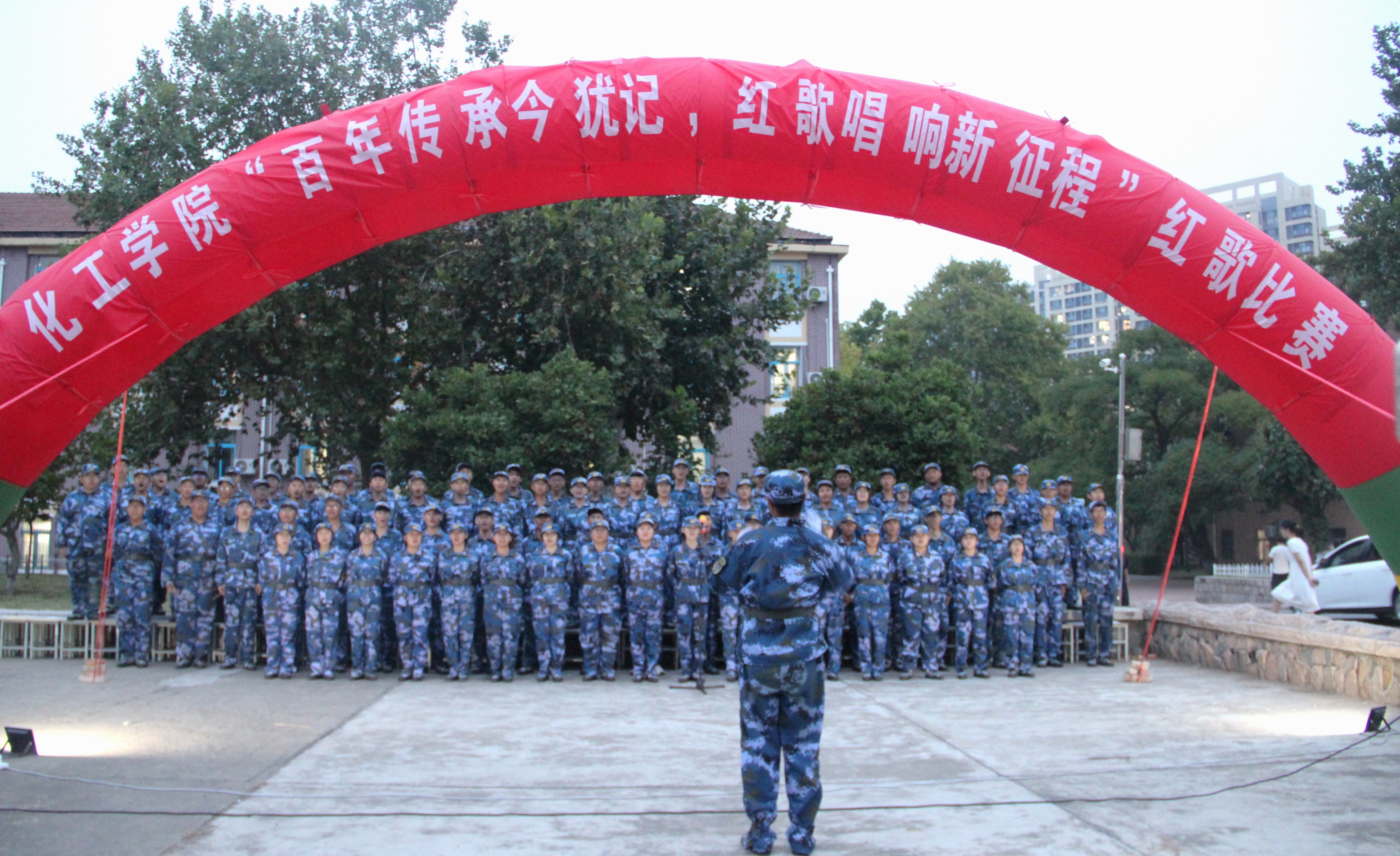 9月11日,化工学院“百年传承今犹记,红歌唱响新征程”2023级新生红歌比赛在四方校区小五四广场举办。军训二团政委、海洋学院党总支副书记臧传永,化工学院党委副书记李春家,军训二团一营全体教官及学院全体辅导员、学生会骨干担任评委。