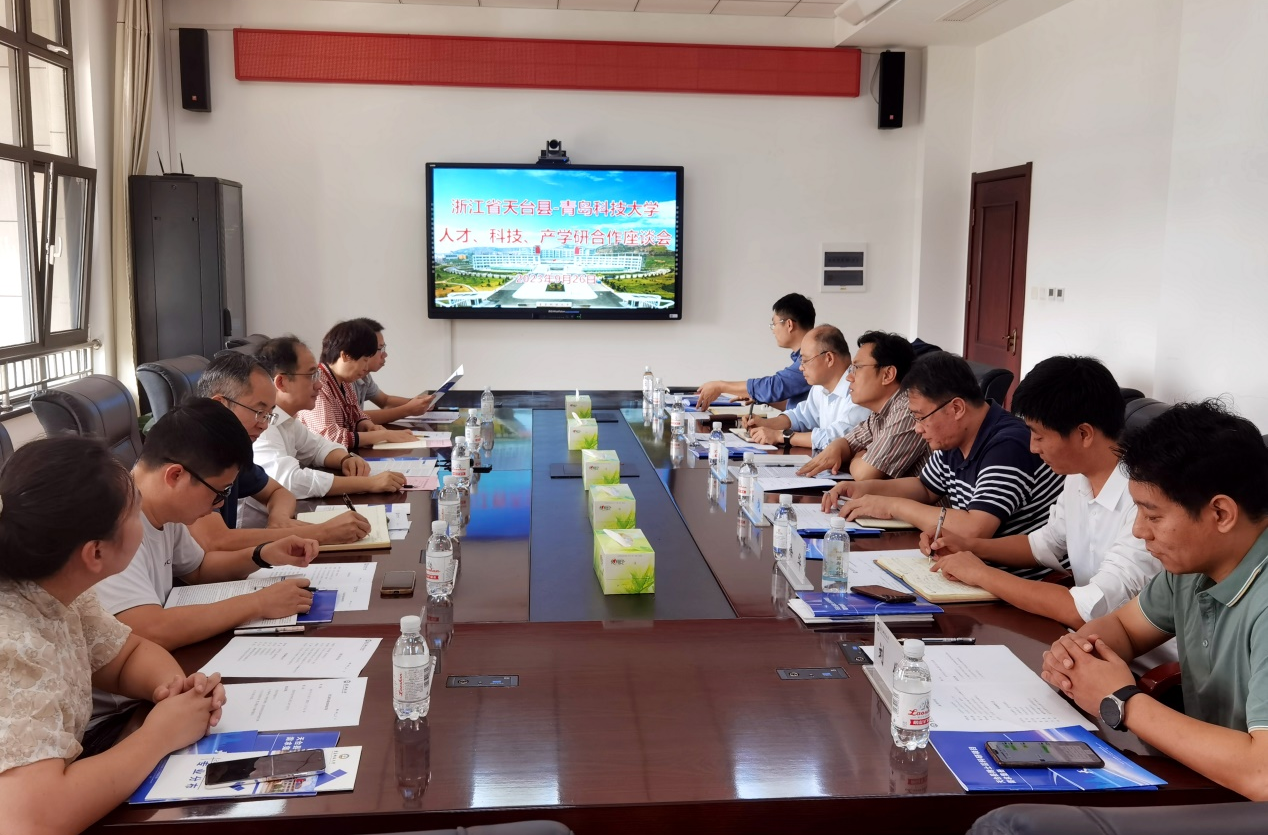 招聘会前,学校与天台县人才、科技、产学研合作座谈会在崂山校区综合服务楼2015会议室召开。张洪坤对项慧明一行的到来表示欢迎,相关负责同志先后介绍了学校着力打造化工学科高峰,努力形成以橡胶、化工为核心特色的学科优势和多学科交叉优势,打造政产学研融合“青科大模式”升级版,中外合作办学等办学特色,以及博士后工作、毕业生就业等情况。