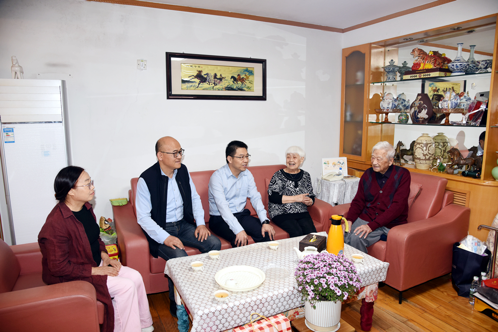 在百岁老人李德林同志家中,吕万翔代表学校感谢老人为学校发展所做的贡献,介绍了学校近年来事业发展取得的成绩,详细询问了老人的身体和生活情况,真诚祝福老人安享幸福晚年。