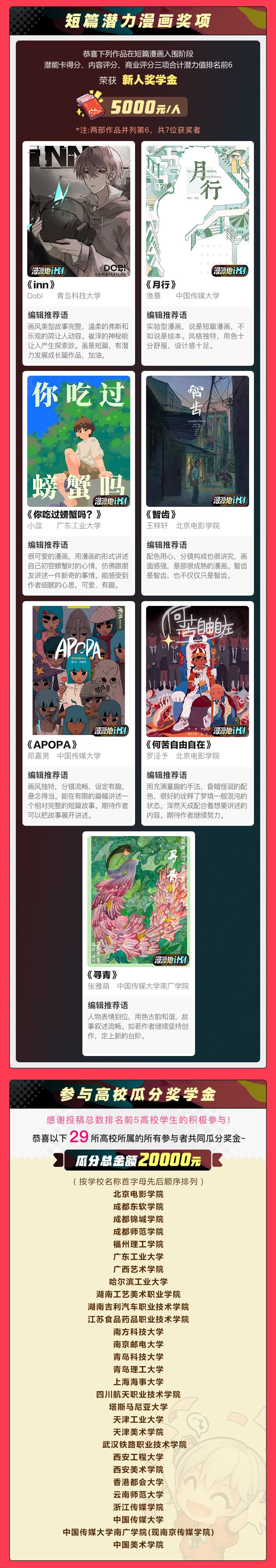 2023年,国内最大最具影响力的动漫平台哔哩哔哩(B站)首次进行“漫源地计划”高校学生潜力漫画大赛征稿,本次比赛有包括北京电影学院、中国传媒大学、中国美术学院、南京艺术学院在内60多所国内动画专业顶尖高校的学生作品共同参加。经过专家评选和全网投票,beat365正版唯一官网动画专业于小博老师指导、崔译丹同学主笔的漫画《INN》以短篇漫画第一名的成绩获得BILIBILI年度奖学金,学校动画作品再次获得业界最高荣誉。
