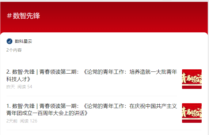 品读红色经典,传承红色基因,唱响时代主旋律。学院创新形式,以立德树人为目的、以新媒体平台为抓手,依托学院微信公众号设置“数智·先锋——青春领读”学习专栏,邀请优秀学生代表以音频的形式带领数科学子研读经典理论著作、交流经典阅读感悟,通过“读”与“听”的交融互促、朋辈共研,引领广大学子提升理论素养、赓续伟大建党精神,积极传播党的声音,推动习近平新时代中国特色社会主义思想入脑入心、走深走实。