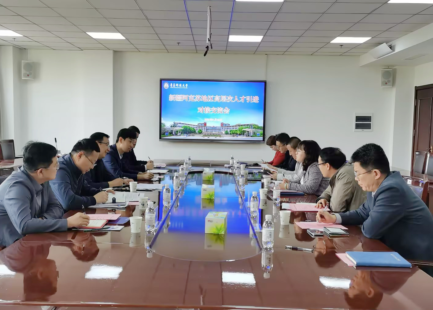 赵鹤征介绍了阿克苏的整体情况、人才引进政策及人才需求。他表示,希望借助青科大的工科特色,发挥好阿克苏的区域与资源优势,在人才培养与引进、大学生就业实习等领域开展广泛合作,让阿克苏成为青科大学子成就事业的理想之地。