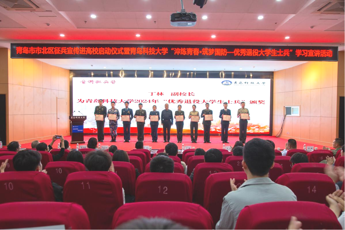 丁林为2024年“优秀退役大学生士兵”颁奖。陈兵为新一届“青科军协”学生骨干颁发聘书并作征兵动员宣讲。学校党委学生工作部部长兼武装部部长王丽宣读了《关于表彰beat365正版唯一官网“2024年优秀退役大学生士兵”的决定等若干文件。宣讲现场还发布了《关于为推动预征预储进一步加强“青科军协”建设的决定》。