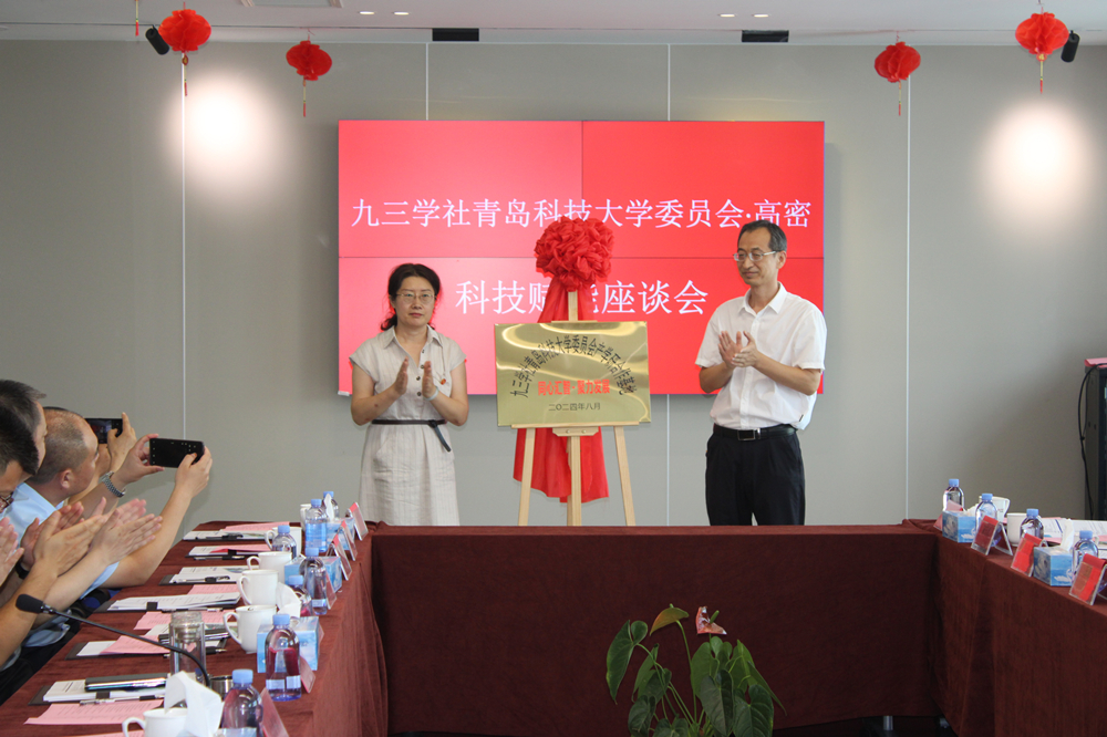 8月16日,九三学社青科大基层委“同心汇智·聚力发展”产学研合作基地揭牌仪式在高密举行。九三学社青岛市委专职副主委、二级巡视员于鹏,高密市政协副主席、高密市科协主席杜春雷共同为基地揭牌。高密市委统战部分管日常工作的副部长、市民宗局局长陈涛,高密市科技局副局长颜志峰,学校党委常委、统战部部长秦姣出席活动。