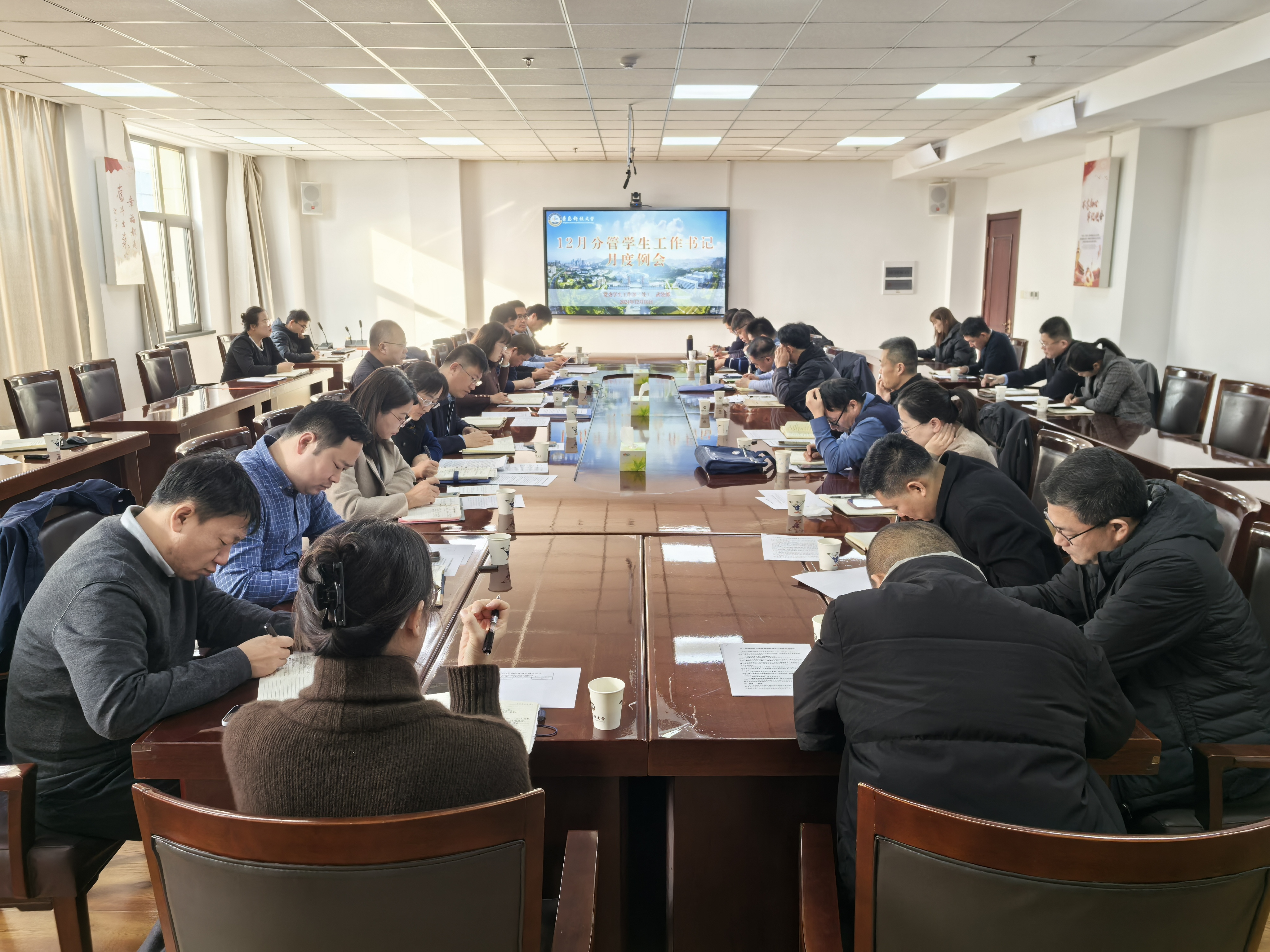 12月10日,学校12月份分管学生工作书记月度例会在崂山校区综合服务楼3015会议室召开。党委常委、副校长丁林出席会议,学生工作处处长王丽主持会议。