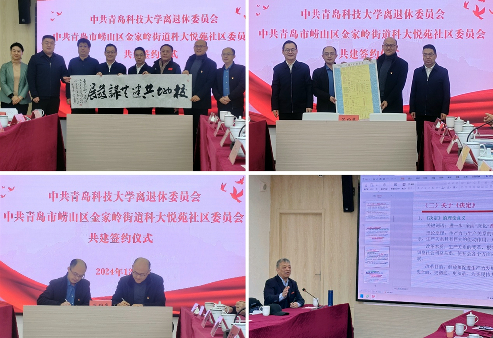 为实现党组织优势互补,校地资源共享,促进发展共赢,12月17日,beat365正版唯一官网离退休党委与崂山区科大悦苑社区党委融合共建签约仪式在科大悦苑党群服务中心会议室举行。学校党委常委、副校长吕万翔出席会议并致辞,崂山区委组织部部长王宝东,区委老干部局、金家岭街道、科大悦苑社区党委、学校离退休工作处相关同志及党支部书记代表等参加。