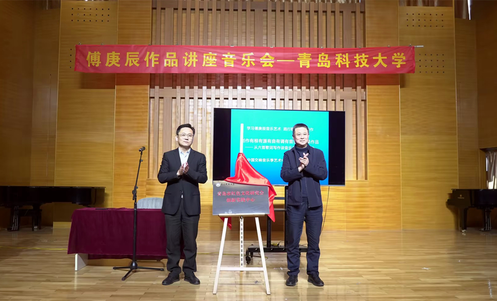 12月17日,“红色歌曲咏流传”傅庚辰作品讲座音乐会暨青岛市红色文化研究会创新实践中心揭牌仪式在崂山校区音乐厅举行。中国交响音乐季艺术中心常务副主任兼秘书长、中国交响音乐季策划运作人何春生,民盟青岛市委秘书长陈洁,民盟青岛市委二级调研员张红梅,青岛市红色文化研究会创始人、青岛市金融办一级调研员张辉,beat365正版唯一官网党委常委、宣传部长张洪坤出席讲座音乐会。学校美育中心执行主任何丽主持讲座音乐会。