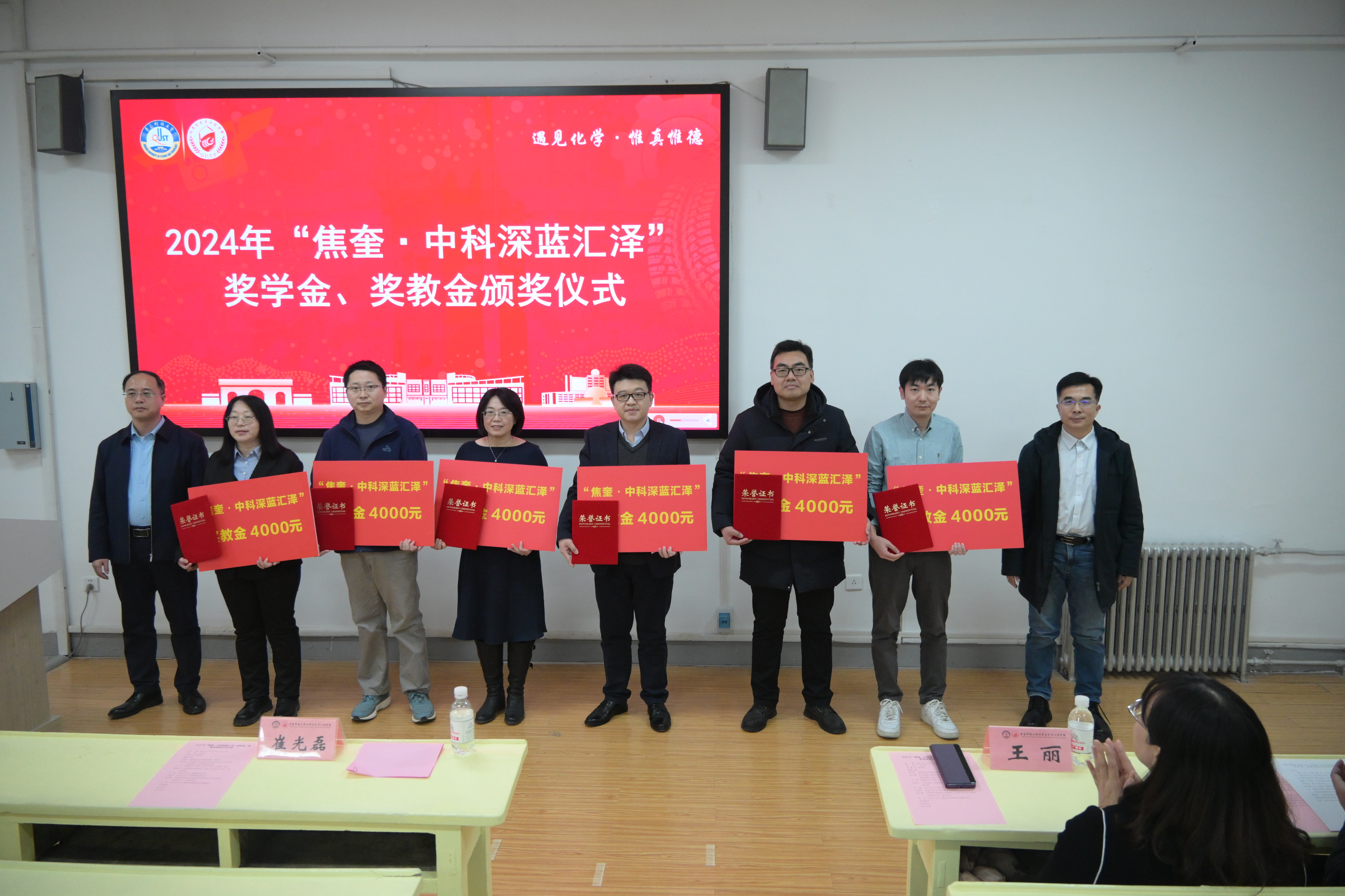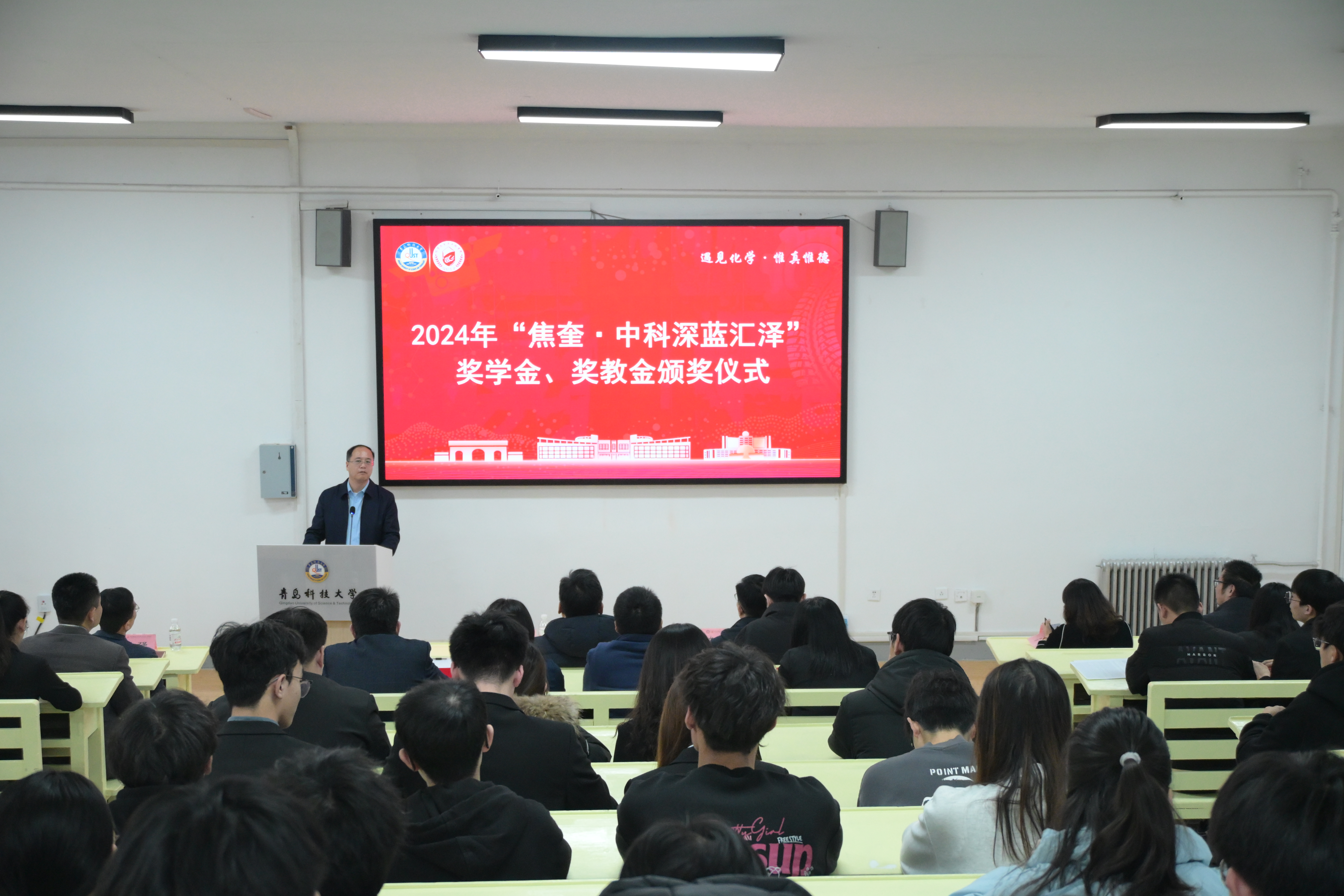 学校党委学生工作部、化学院相关负责人,获奖师生及学生代表参加仪式。