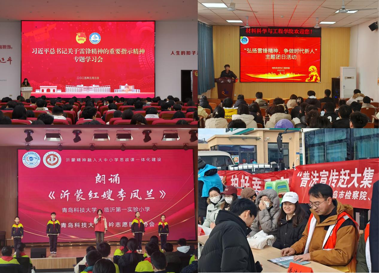 学思践悟深扎根,让雷锋精神在校园落地生花。校团委、校学生会、校研究生会开展“弘扬雷锋精神,践行青春担当”学雷锋主题教育实践活动,制定《学校共青团系统2025年度学雷锋活动方案》,举行“习近平总书记关于雷锋精神的重要指示精神专题学习会”,组织“旗展雷锋精神,弘扬道德新风”主题升旗活动、“挺膺担当展青年风采,传承精神扬雷锋风尚”雷锋精神分享会专项活动,推动学习雷锋精神常态化、长效化,形成人人学雷锋、处处见行动的良好氛围。数理学院团委承办“永恒的丰碑”雷锋精神专题展暨寒假社会实践成果展在崂山校区开幕,专题展以“理论阐释+实践叙事”为主线,创新打造沉浸式“六大展区”,作为新学期实践育人第一课,展览首日吸引400余名青年学生现场观展。艺术学院团委组织开展“光影悟雷锋,艺心永传承”观影、身边的“雷锋”故事分享会等活动,挖掘身边的好人好事,引导青年学生从日常小事践行雷锋精神。马克思主义学院团委以“践行‘两山’理论,守护校园绿水青山”为主题开展学雷锋校园实践活动,捡拾校园内登山步道区域的塑料瓶、食品袋、烟盒等各类不易降解的垃圾,守护了校园环境。数据科学学院团委通过“雷锋精神代代传,青春志愿谱新篇”主题团课生动讲解雷锋事迹和新时代雷锋精神,引导学生深刻理解雷锋精神的时代价值,也走进社区开展“践行雷锋精神,智启银龄生活”志愿服务活动,为老年人提供智能设备使用指导,帮助他们跨越“数字鸿沟”。化工学院团委以“传承雷锋精神,争做追‘锋’青年”为主题,开展互动问答、影像征集等活动,引导200余名学子感悟雷锋精神内核;创新“追锋行动”校园公益跑,将3.5公里运动实践与微志愿服务结合,绘就“运动+公益”青春图谱。自动化学院团委开展“践行雷锋精神,彰显青春担当”学雷锋主题团日活动与“AI家驿站”一站式学生社区志愿服务活动。材料学院团委开展“弘扬雷锋精神,争做时代新人”主题团日活动,通过主题宣讲和分享会,深入学习雷锋事迹,引导青年学生树立奉献意识,争做新时代有为青年。化学院团委组织开展“学雷锋”主题班会、团日活动,通过介绍雷锋生平事迹、诵读雷锋日记名言,激励同学们将个人追求与国家发展相连,以实际行动传承弘扬雷锋精神,构建优良班风、和谐校园。经管学院团委开展“读《雷锋日记》,谈人生理想”雷锋精神读书分享会,引导学生深化对雷锋精神的理解与认识,深刻把握雷锋精神的时代内涵,同时通过“平安青科·雷锋同行”反诈宣讲活动,帮助学生培养反诈意识,增强自我保护能力。高密校区团委举办“光影绘雷锋,创意传真情”雷锋月主题系列活动,运用手绘、电脑设计等多样形式,大胆创新,设计出风格多样的海报,展现了雷锋精神在新时代的传承与创新。