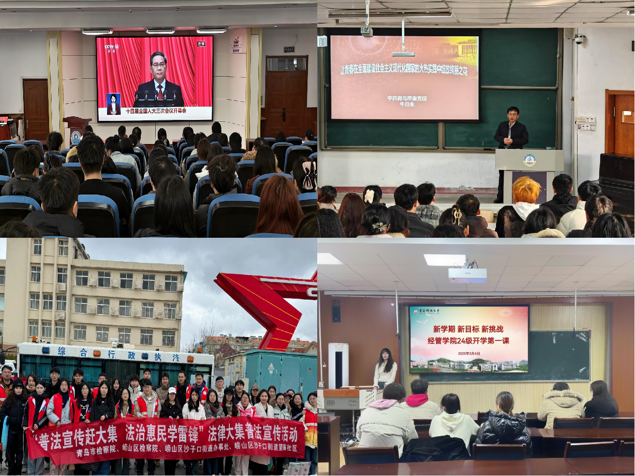 以政治性为统领,上好“思政教育”开学第一课,唱响红色主旋律。机电学院多渠道分层次学习宣传贯彻党的二十大、党的二十届三中全会精神,组织“雷锋精神进校园”主题活动,依托“机智空间”平台,开展线上线下思政教育活动,培养学生正确的世界观、人生观和价值观。经管学院围绕习近平总书记对青年的殷殷嘱托,组织“青年大讨论”,让学生在交流与思考中进一步明确“请党放心,强国有我”的人生方向。法学院带领学院青年志愿者开展“赓续雷锋精神,传承红色血脉”主题思政课,深入崂山区东韩馨悦社区、沙子口街道开展志愿服务追“锋”行动,用实际行动展现青年担当。生物工程学院邀请中共青岛市委党校中共党史党建与党性教育教研部副主任、副教授牛月永为学院全体党员、学生骨干作题为《让青春在全面建设社会主义现代化国家的火热实践中绽放绚丽之花》的思政报告,勉励同学们厚植家国情怀,强化使命担当。