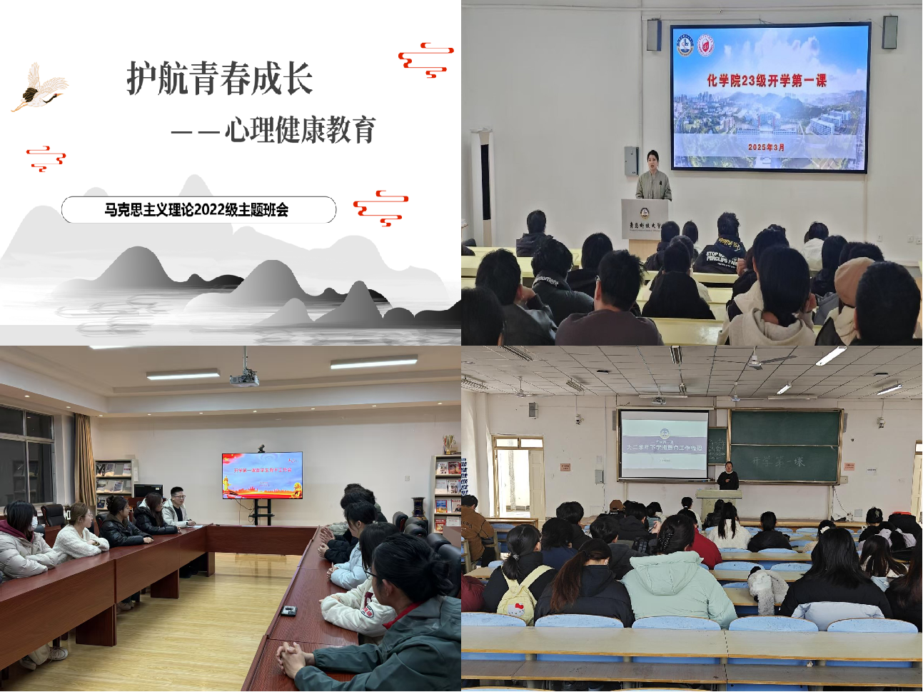 以健康为保障,上好“心理健康”开学第一课,护航学生身心健康。化学院通过引导学生关注自身情绪变化,鼓励学生在面对学业压力和生活挑战时保持积极心态,合理安排学习和生活节奏,注重心理调适。马克思学院开展“护航青春成长——心理健康教育”等主题班会,从大学生心理健康现状、常见心理问题、影响因素等三个方面,详细讲解心理健康的重要性。艺术学院依托公众号、主题班会、年级大会等渠道广泛宣传“12356”全国统一心理援助热线和“青科大心理健康教育与咨询中心”等,普及心理健康知识,帮助学生掌握压力和情绪调节技巧。高密校区举办学生“阳光成长”第一课,组织观看心理健康教育宣传片,引导学生正确认识生命的价值与意义,打破对心理问题的认知误区。